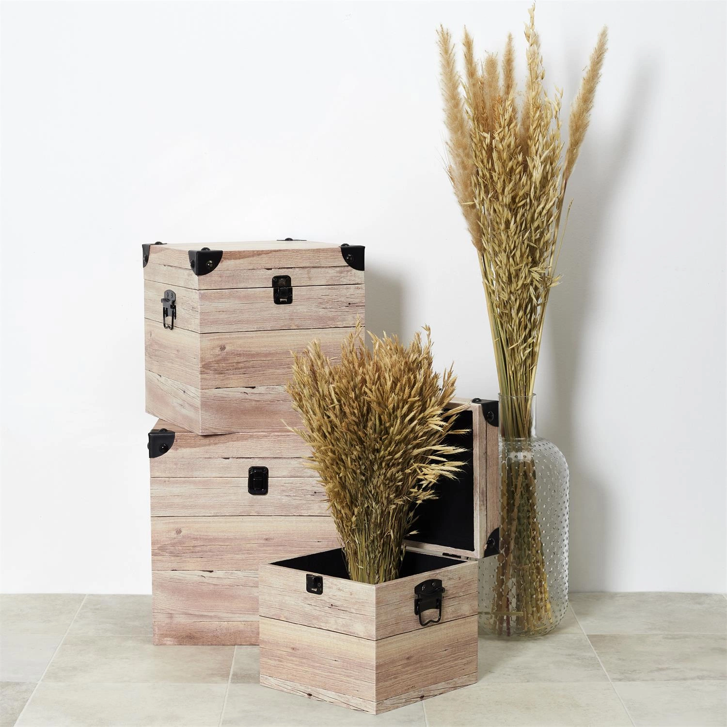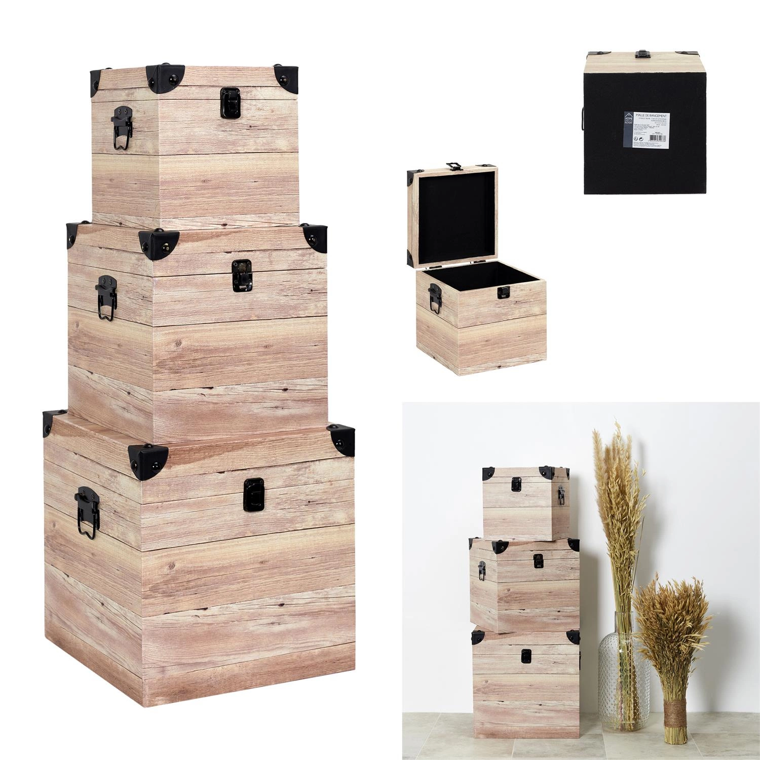 Zestaw 3 pudełek dekoracyjnych kwadratowych Intesi to praktyczne i stylowe rozwiązanie do przechowywania, które wprowadzi do Twojego wnętrza ciepły, naturalny akcent. Wykonane z trwałej płyty MDF z efektem drewna, oferują trzy uniwersalne rozmiary: 30x30x30 cm, 25x25x25 cm oraz 20x20x20 cm. Każde pudełko dekoracyjne zostało zaprojektowane z myślą o aranżacjach w stylu boho, by wnieść do sypialni, garderoby czy salonu niepowtarzalny klimat i harmonię.