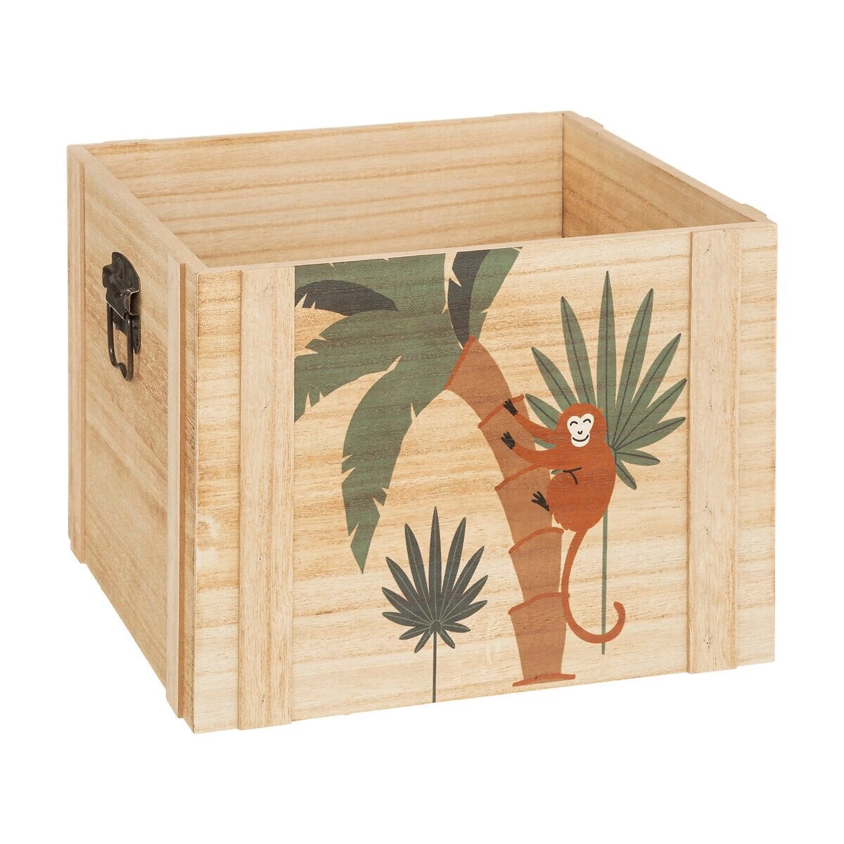 Zestaw 3 drewnianych pudełek dekoracyjnych Jungle marki Atmosphera to praktyczne i efektowne rozwiązanie do przechowywania w pokoju dziecięcym. Wykonane z wytrzymałej płyty pilśniowej, łączą lekkość i solidność, a ich nowoczesny, kolorowy design z motywem dżungli wprowadza radosny klimat do każdego wnętrza. Trzy różne rozmiary (34×34×28 cm, 30×30×23 cm, 25×25×18 cm) umożliwiają swobodne dopasowanie do potrzeb dziecka oraz aranżacji przestrzeni.