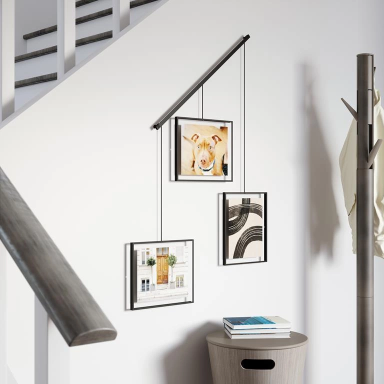 - ciekawa ozdoba ściany klatki schodowej lub salonu