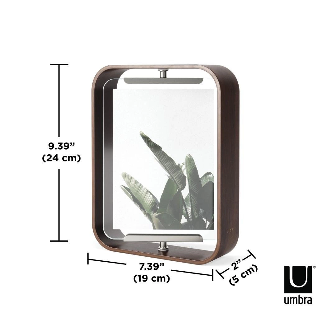 Bądź kreatywny dzięki stojącej ramce na zdjęcia Bellwood | Umbra Stojąca ramka na zdjęcia Bellwood firmy Umbra to ekologiczny i stylowy wybór do ekspozycji ulubionych zdjęć. Jej dwustronna, wszechstronna konstrukcja pozwala na obracanie zdjęć w celu uzyskania unikalnego wyglądu i pasuje do zdjęć o rozmiarze do 12,8 x 18 cm! Dodaj trochę uroku w stylu boho lub skandynawskim do każdego pomieszczenia dzięki ramce Bellwood. Przynieś do domu idealny element dekoracyjny w stylu boho z ramką na biurko Bellwood. Łącząc styl i zrównoważony rozwój, wytrzymała obustronna rama wykonana jest z połączenia drewna bukowego, topolowego, szkła oraz metalu, przez co jest zarówno nowoczesna, jak i przyjazna dla środowiska. Unikalna konstrukcja pozwala z łatwością dopasować ją do każdej przestrzeni. Można ją wygodnie obracać o 360 stopni, aby uzyskać niestandardowy wygląd, lub zmienić orientację zdjęcia. Jego minimalistyczny styl pasuje do zdjęć o wymiarach 12,8 x 18 cm, dając nieskończone możliwości wyboru zdjęć, które chcesz zatrzymać przy sobie. Wzbogać swój wystrój wnętrza i podnieś atmosferę swojego domu bez kompromisów w zakresie stylu lub wpływu na środowisko dzięki ramce na biurko Bellwood! O tym warto pamiętać! Wyeksponuj swoje ulubione zdjęcia, dodając jednocześnie uroku boho do swojego domu Unikalna, dwustronna ramka umożliwia obracanie zdjęć o 360 stopni Ekologiczna konstrukcja z drewna bukowego sprawia, że jest to nowoczesny i trwały wybór Łatwa zmiana orientacji zdjęcia Dodaj odrobinę natury i wyrafinowania do każdego pomieszczenia w domu