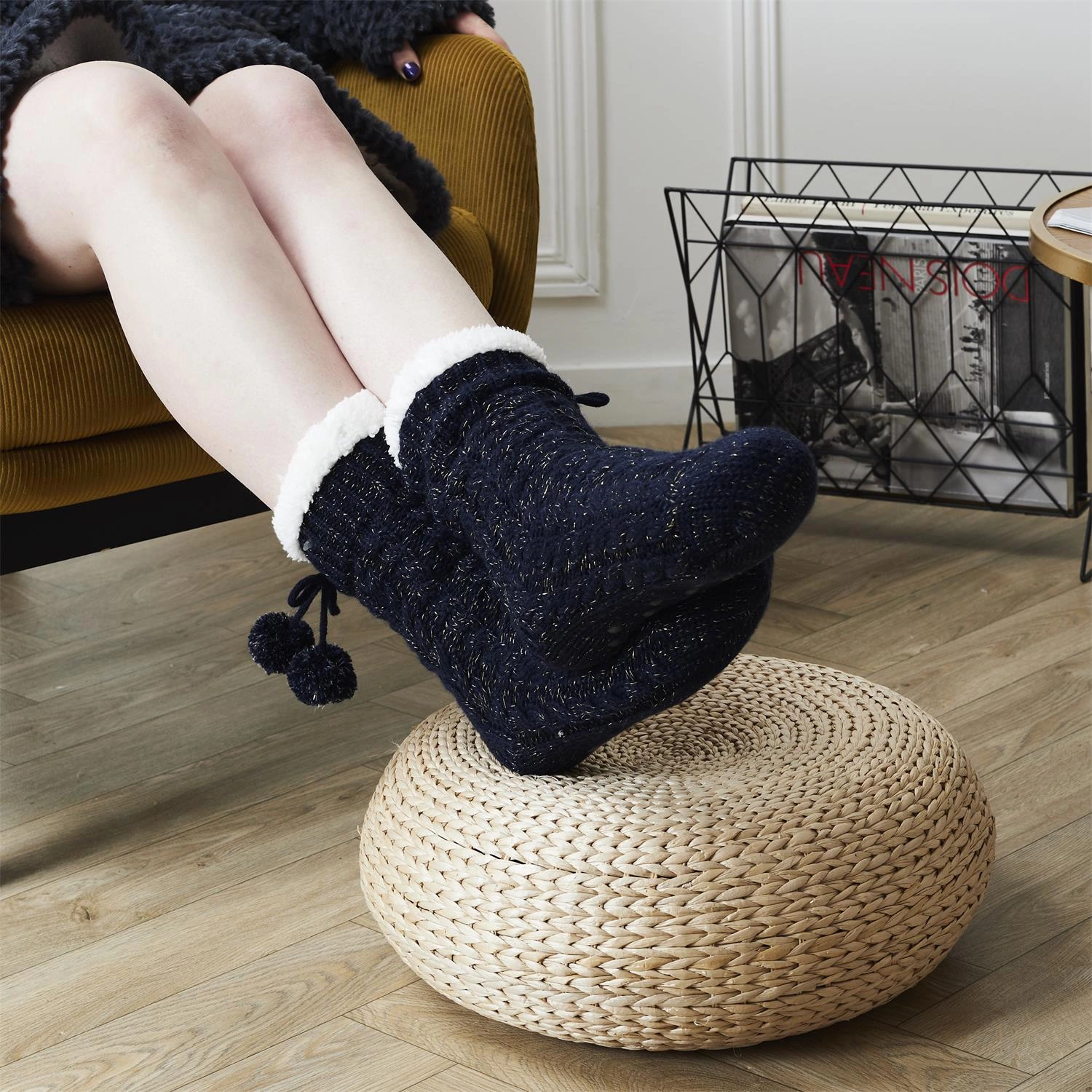 Zastosowanie klasycznego splotu warkoczykowego w połączeniu z głębokim granatem to propozycja dla osób ceniących modne, a zarazem uniwersalne dodatki. Skarpetki męskie i damskie w tym stylu świetnie komponują się z domowym strojem i mogą stanowić atrakcyjny element prezentowy. Ich szeroki fason pozwala komfortowo otulić stopy, a nowoczesny materiał gwarantuje trwałość oraz łatwe utrzymanie skarpetek w czystości.