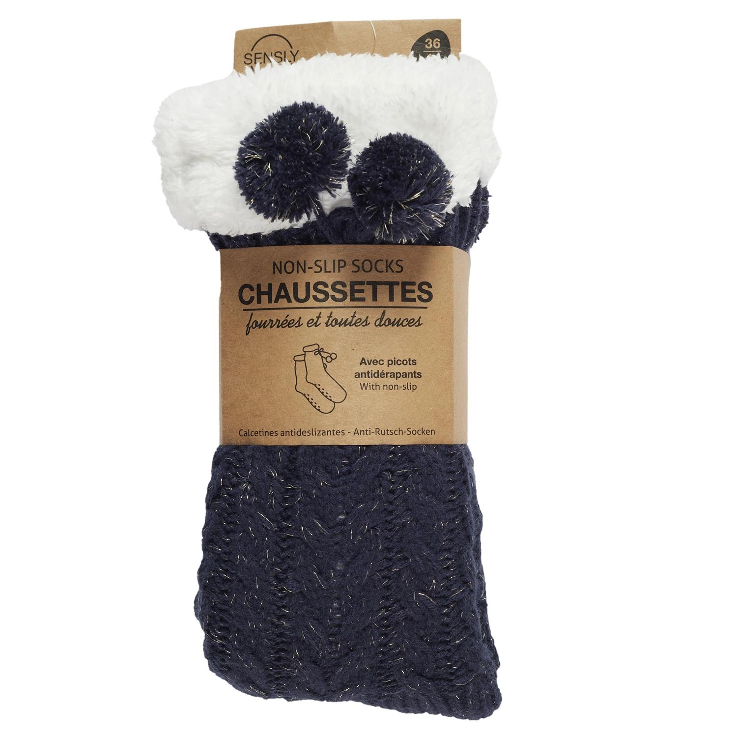 Skarpety granatowe w warkoczykowy splot Intesi to połączenie przytulności, stylu i nowoczesnego designu. Wykonane w 100% z miękkiego poliestru, zapewniają wyjątkową wygodę i ciepło w chłodniejsze dni. Uniwersalny rozmiar, szerokość 25 cm i wysokość 25 cm sprawiają, że te skarpetki doskonale otulają stopy, czyniąc je idealnym wyborem do relaksu w salonie lub sypialni.