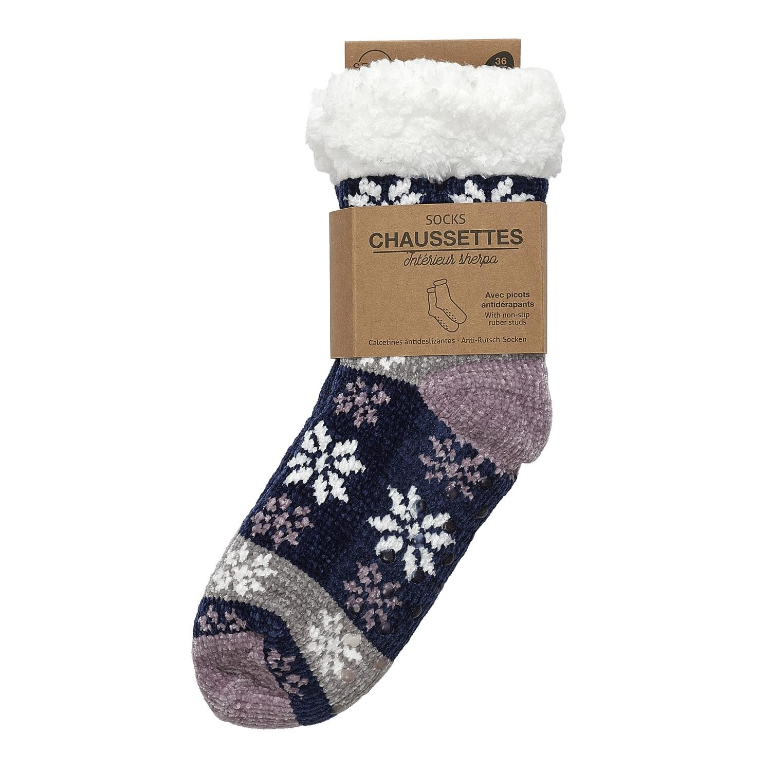 Skarpetki świąteczne ocieplane granatowe Intesi to propozycja, która łączy wygodę noszenia, nowoczesny styl i praktyczność na zimowe wieczory. Wykonane z miękkiego, przyjemnego w dotyku materiału, skutecznie chronią przed chłodem, a antypoślizgowy podkład zwiększa bezpieczeństwo podczas chodzenia po gładkich podłogach w domu. Ich wysokość 37,5 cm pozwala otulić całą stopę i część łydki, zapewniając komfort nawet podczas długiego relaksu na kanapie.