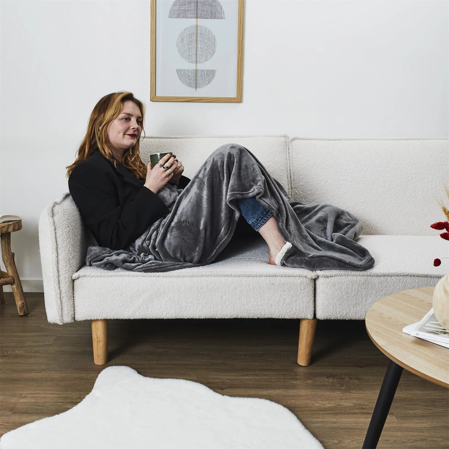 Koc polarowy Intesi został stworzony z myślą o tych, którzy cenią sobie relaks po długim dniu. Jego gruba, ciepła struktura oraz wyjątkowa miękkość sprawiają, że każda chwila odpoczynku nabierze nowego wymiaru. Kieszeń na stopy skutecznie chroni przed zimnem, eliminując potrzebę dodatkowych skarpet czy ogrzewaczy. To doskonały koc na kanapę, który sprawdzi się podczas wieczornego oglądania filmów, popołudniowej drzemki czy chwili z książką.