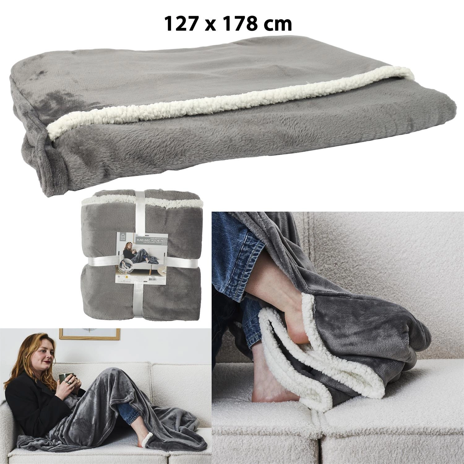 Intesi szary ciepły koc polarowy z kieszenią na stopy 127x178 cm to połączenie funkcjonalności i przytulnego komfortu, którego szukasz w długie, chłodne wieczory. Wykonany z niezwykle miękkiego, puszystego polaru, oferuje nie tylko wyjątkowe ciepło, ale także praktyczną kieszeń na stopy, która zapewnia dodatkową ochronę przed zimnem. Prostokątny kształt i uniwersalny szary kolor sprawiają, że koc doskonale prezentuje się zarówno na kanapie, fotelu, jak i łóżku w salonie lub sypialni.