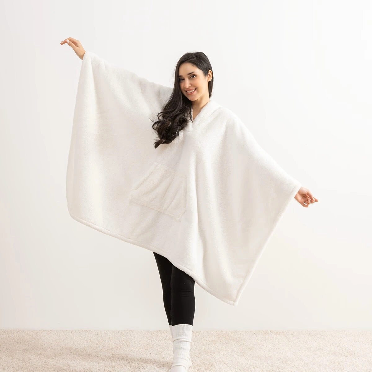 Uniwersalny biały kolor koca z rękawami Aksel sprawia, że doskonale wpasuje się zarówno w nowoczesną, jak i klasyczną aranżację salonu czy sypialni. To nie tylko praktyczny element wyposażenia, ale również subtelny dodatek dekoracyjny, który podkreśli charakter Twojego domu. Dzięki swojej lekkości i puszystości, pled ten sprawdzi się także jako narzuta na łóżko, dodając przestrzeni świeżości i elegancji.
