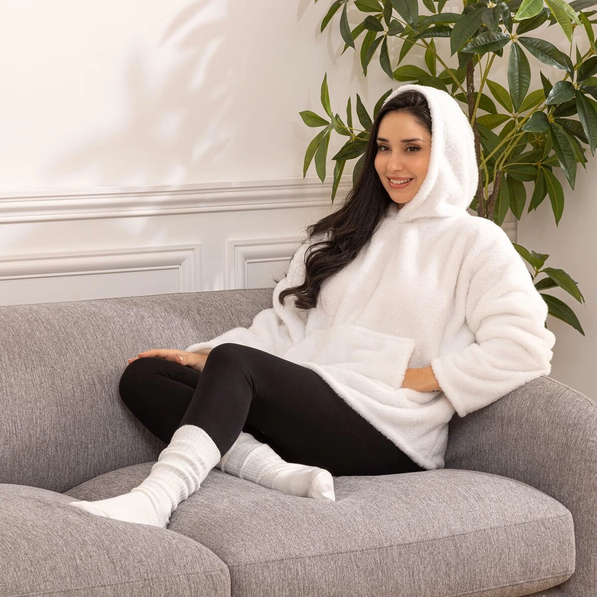 Biały koc z rękawami Teddy to nie tylko praktyczny gadżet, ale również subtelny akcent dekoracyjny, który dopełni aranżację każdego salonu czy sypialni. Jego neutralny kolor wpisuje się w nowoczesne i klasyczne wnętrza, a puszysta faktura zachęca do odpoczynku. To doskonały wybór na zimowe wieczory, chłodne poranki oraz leniwe weekendy, kiedy liczy się komfort i miękkość dotyku.