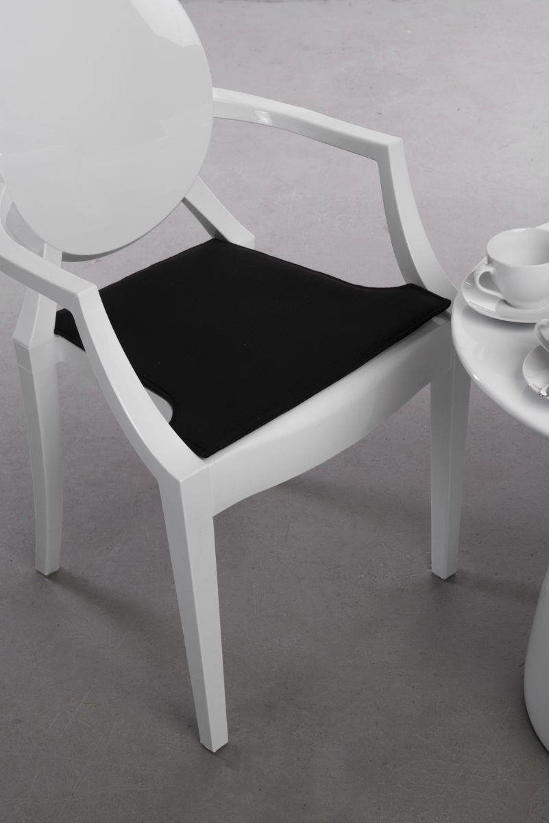 Minimalistyczna forma oraz głęboka czerń sprawiają, że poduszka okrągła Royal od Intesi wkomponuje się w wiele aranżacji – od nowoczesnych po industrialne. Filcowa tkanina subtelnie podkreśla designerski charakter mebli, a zarazem chroni ich powierzchnię przed zarysowaniami czy śladami użytkowania. Dzięki temu rozwiązaniu możesz łatwo odmienić wygląd swoich krzeseł, nie rezygnując z ich stylu.