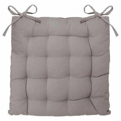 Poduszka na krzesło pikowana Atmosphera 38x38 szara to nowoczesny dodatek do jadalni, wykonany z naturalnej bawełny. Kwadratowy kształt, staranne pikowanie oraz praktyczne wiązania sprawiają, że idealnie sprawdzi się zarówno na krzesłach kuchennych, jak i w salonie. Miękkie wypełnienie o wysokości 6 cm gwarantuje wygodę nawet podczas dłuższych posiłków, a uniwersalny, jasnoszary kolor wprowadza do wnętrza subtelną elegancję.