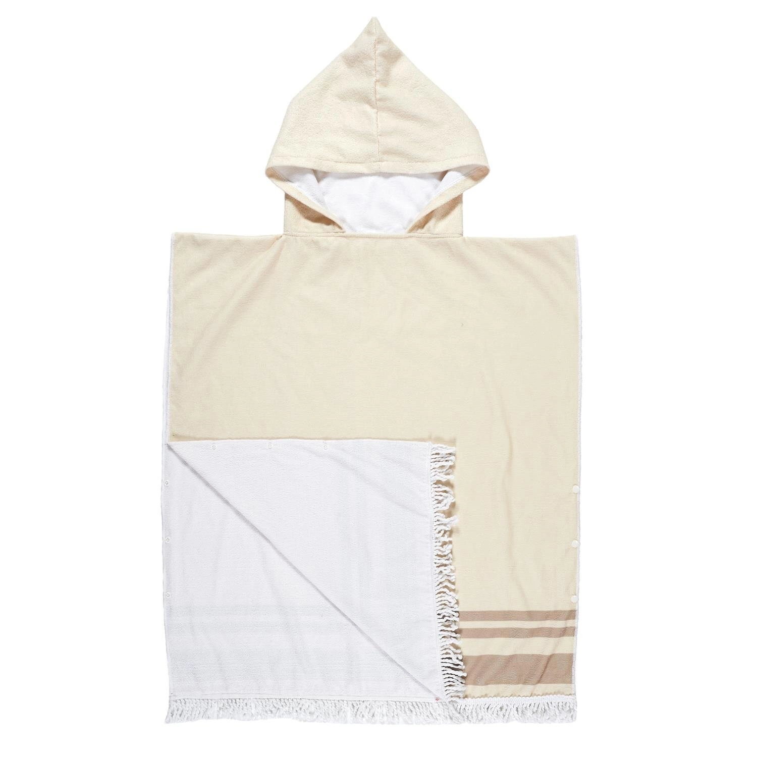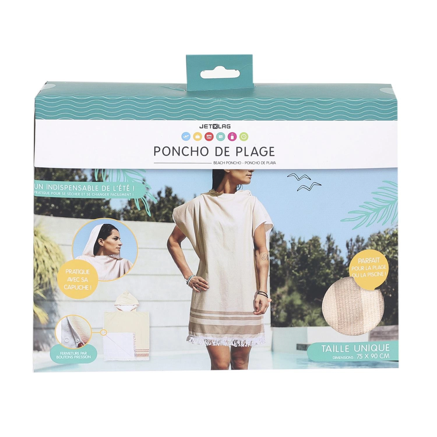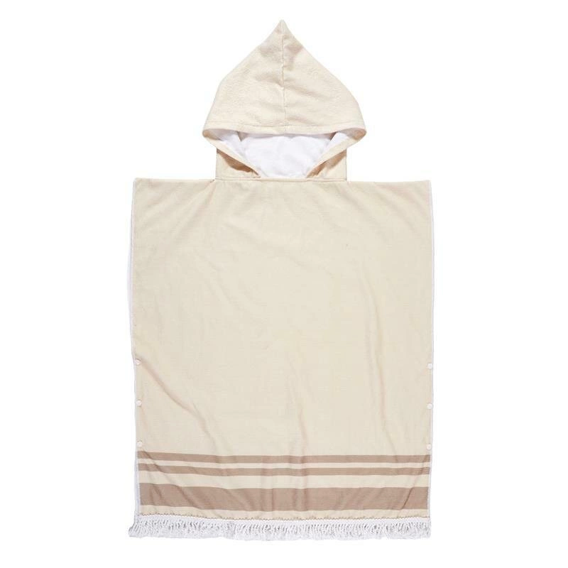 Ponczo wykonane z wchłaniającej wodę tkaniny (100% poliester) sprawdzi się nie tylko na egzotycznej plaży ale również na wypadzie nad jezioro lub choćby basen. Ponczo z kapturem pozwoli wytrzeć zarówno ciało jak i mokre włosy. Ponczo w modnym jasnych kolorach ozdobione zostało chwostami, które dodają mu uroku i nawiązują do stylu boho. Ponczo jest luźne i ze względu na swoje uniwersalne wymiary pasuje na każdą osobę.