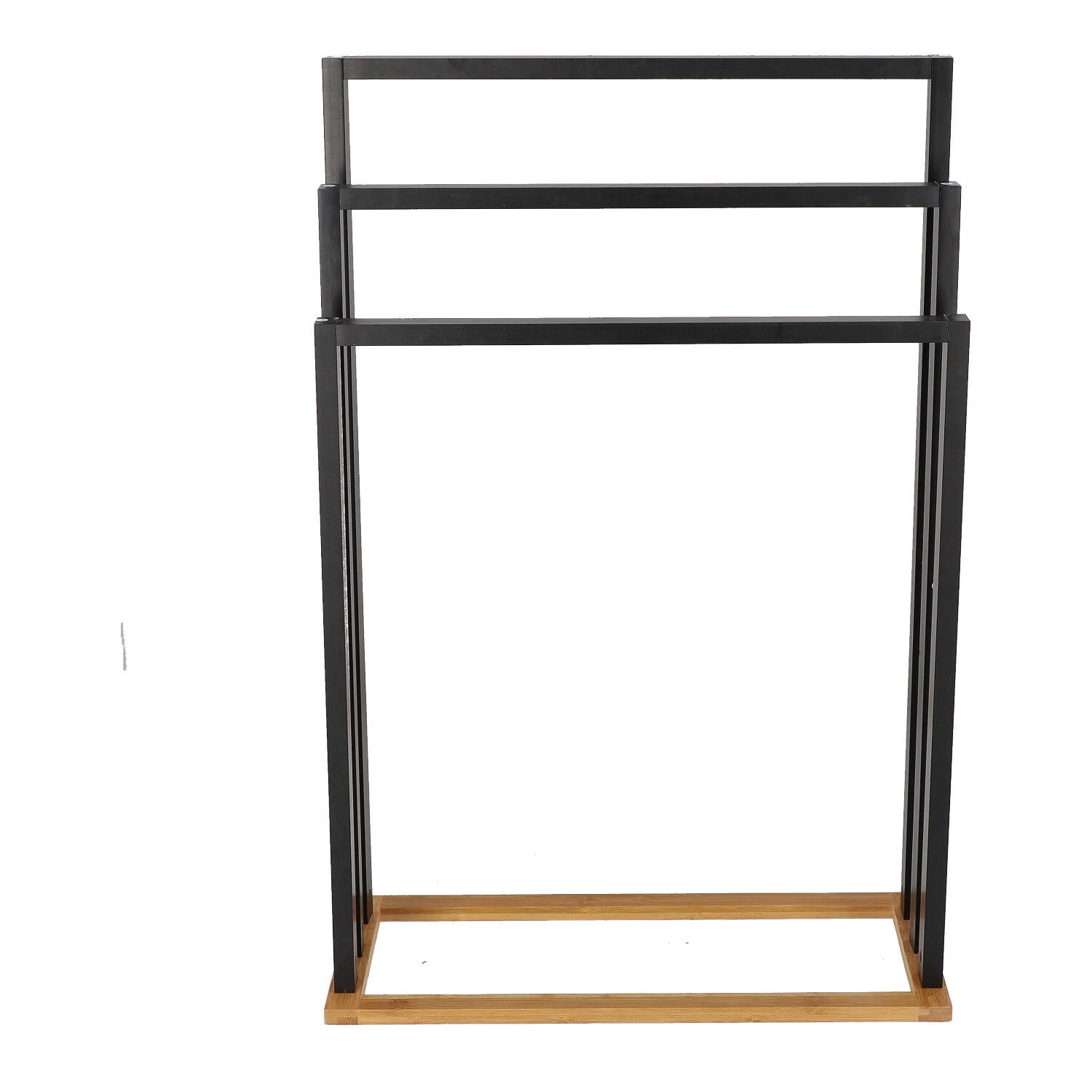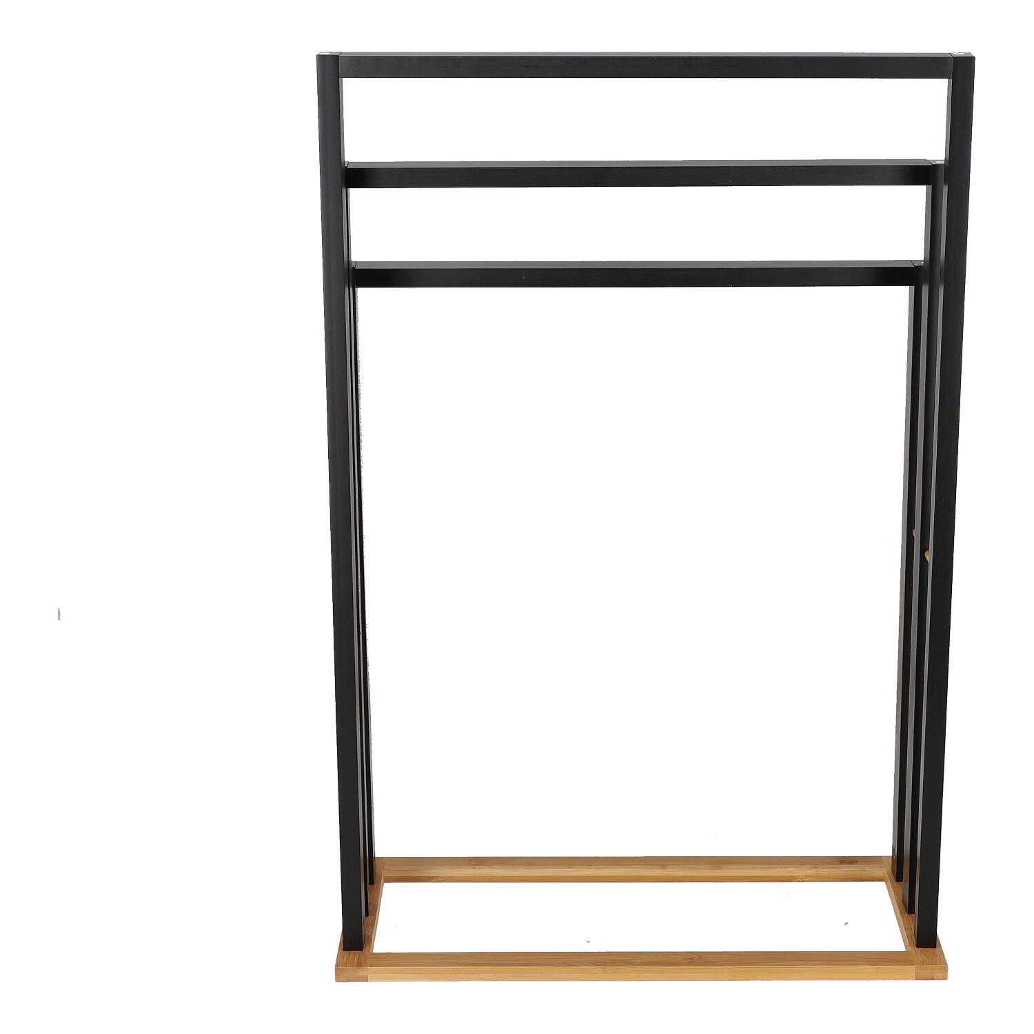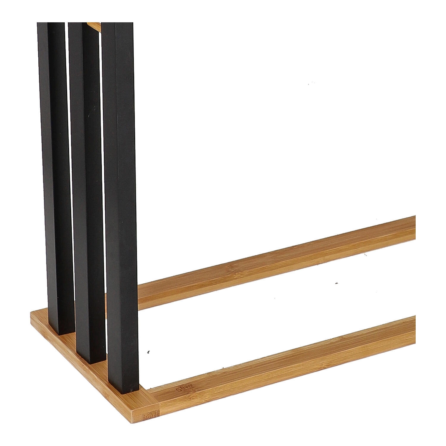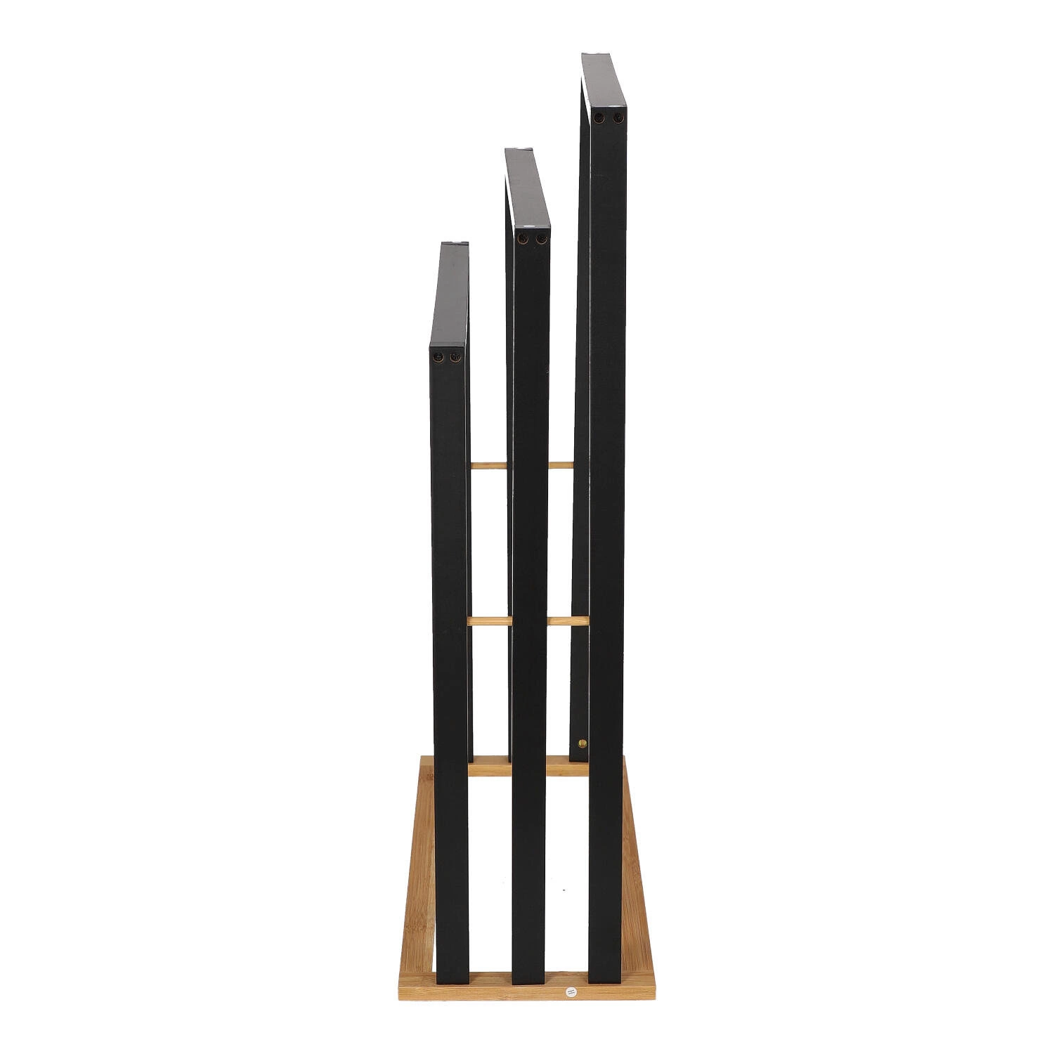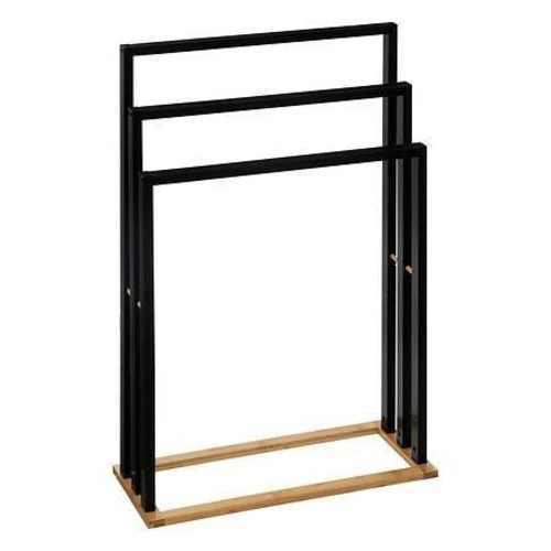 Naturalny kolor podstawy i czarne wieszaki tworzą harmonijną całość, która wprowadzi do Twojej łazienki przytulny klimat w stylu boho. Stojak na ręczniki posiada trzy różnej wysokości wieszaki, co pozwala na wygodne przechowywanie zarówno aktualnie używanych, jak i suszących się ręczników. Dzięki temu, Twoje ręczniki zawsze będą w zasięgu ręki, a łazienka zyska na porządku i estetyce.