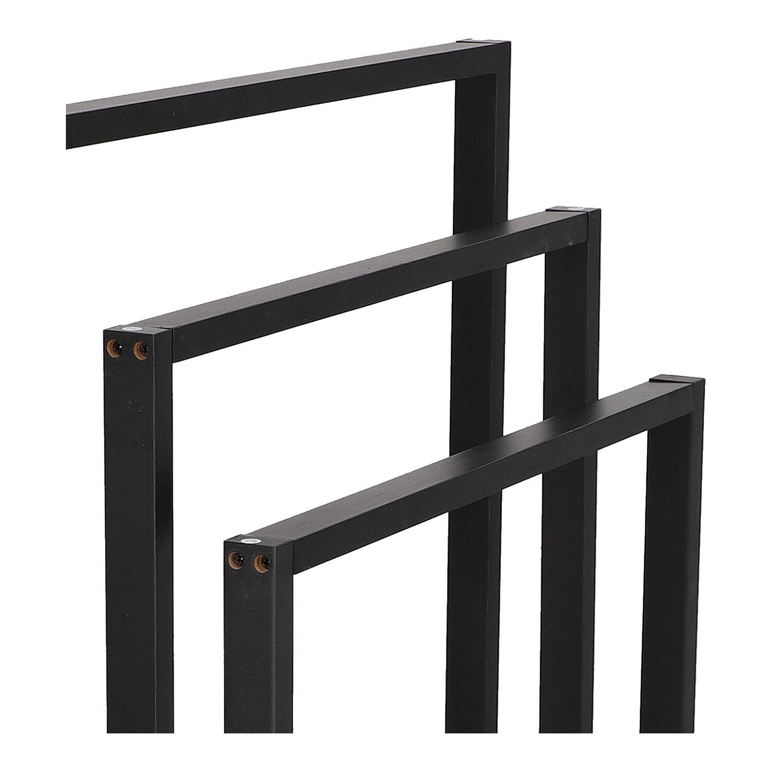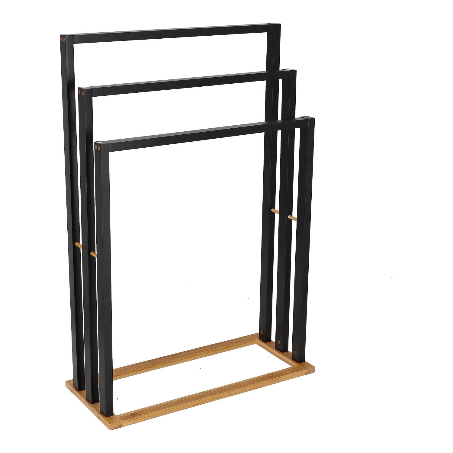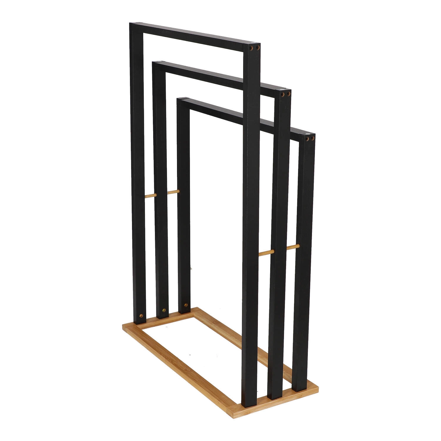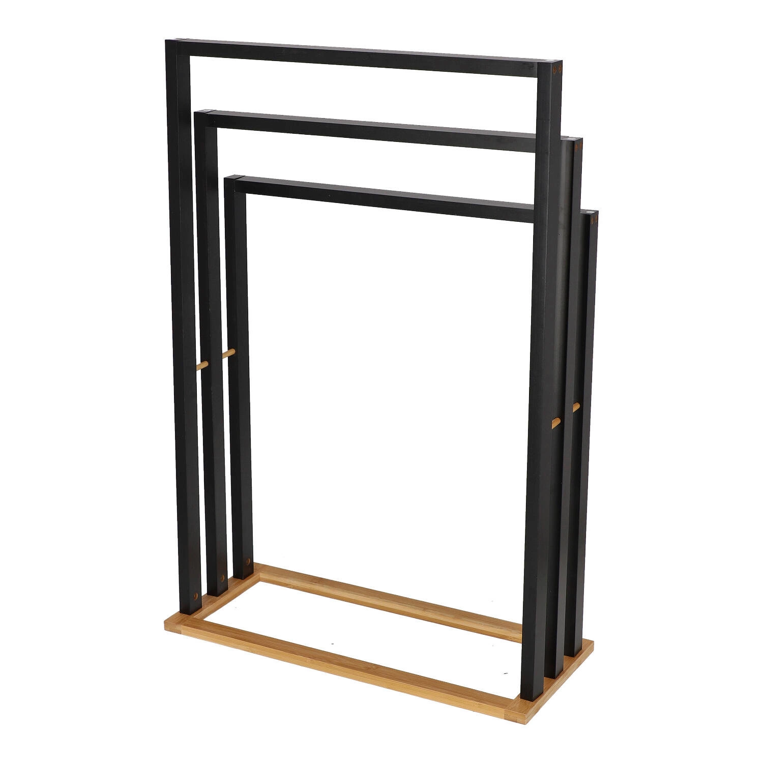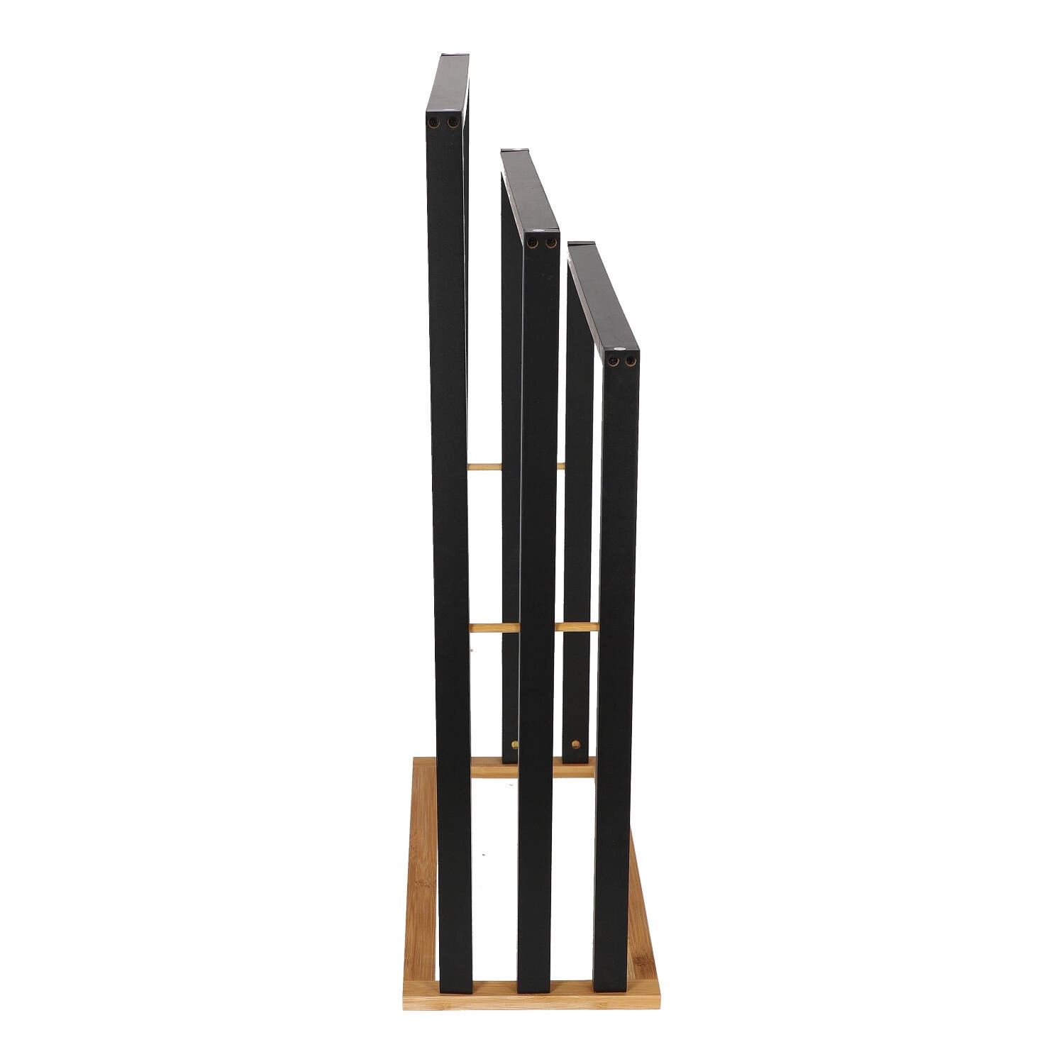 Naturalny kolor podstawy i czarne wieszaki tworzą harmonijną całość, która wprowadzi do Twojej łazienki przytulny klimat w stylu boho. Stojak na ręczniki posiada trzy różnej wysokości wieszaki, co pozwala na wygodne przechowywanie zarówno aktualnie używanych, jak i suszących się ręczników. Dzięki temu, Twoje ręczniki zawsze będą w zasięgu ręki, a łazienka zyska na porządku i estetyce.