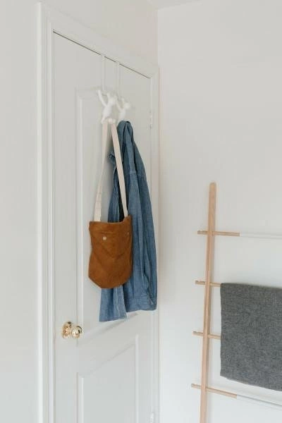 Wieszak na drzwi Umbra Buddy to praktyczne rozwiązanie dla osób, które cenią szybkie zmiany i nie chcą ingerować w strukturę ścian. Montaż polega na zawieszeniu wieszaka na drzwiach o grubości do 3,8 cm – bez użycia narzędzi czy śrub. To doskonała propozycja do mieszkań wynajmowanych, pokojów dziecięcych czy biur, gdzie liczy się komfort użytkowania i możliwość łatwego przenoszenia akcesoriów.