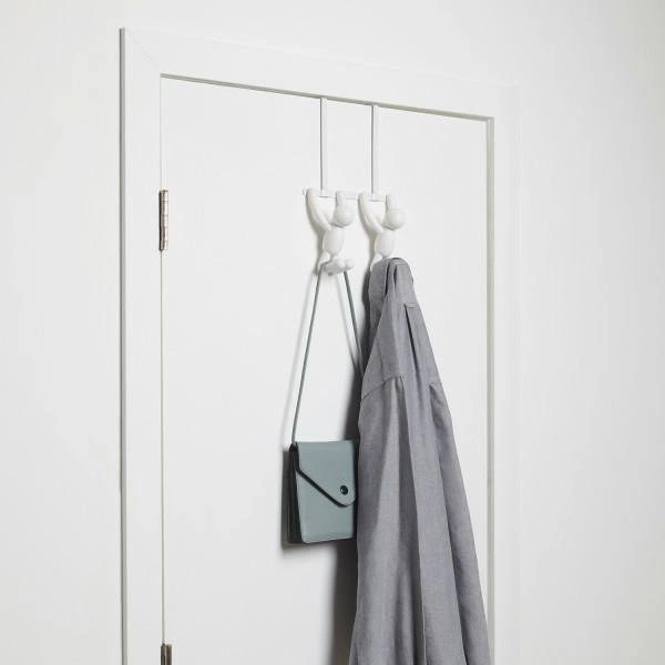 Wieszak na drzwi Umbra Buddy przyciąga uwagę oryginalnym kształtem inspirowanym postacią „ludzika”, dzięki czemu świetnie wpisuje się w nowoczesne wnętrza i minimalistyczne aranżacje. Matowa, biała powierzchnia subtelnie odbija światło, nadając pomieszczeniu lekkości i świeżości. Dzięki uniwersalnej stylistyce wieszak pasuje zarówno do przedpokoju, garderoby, jak i łazienki, umożliwiając uporządkowane przechowywanie codziennych akcesoriów.