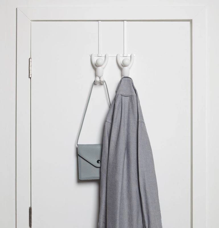 Oryginalny wieszak ścienny na drzwi z serii Buddy marki Umbra sprawdzi się jako praktyczny prezent na parapetówkę, do nowego mieszkania czy pokoju nastolatka. To połączenie dekoracyjnej formy z wygodą codziennego użytkowania, które pozwala utrzymać porządek i wprowadza pozytywną energię do każdego wnętrza.