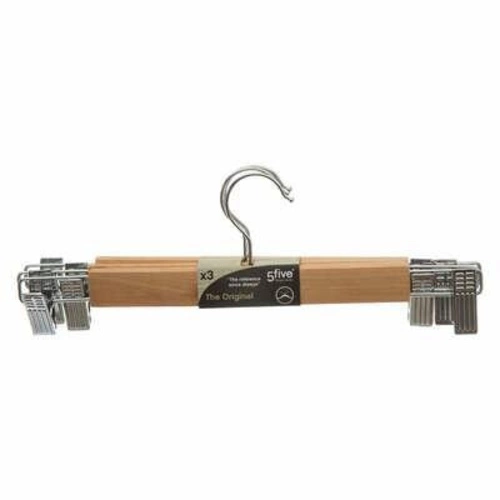 Wieszaki te są wyposażone w solidne klipsy, które umożliwiają pewne zawieszenie spodni, spódnic oraz innych elementów garderoby, które wymagają dodatkowego podtrzymania. Metalowe klipsy są wytrzymałe i łatwe w użyciu, co pozwala na szybkie i bezproblemowe zawieszanie oraz zdejmowanie ubrań. Dodatkowo, drewniana konstrukcja wieszaków jest gładka i polakierowana, co chroni odzież przed zagnieceniami i uszkodzeniami.