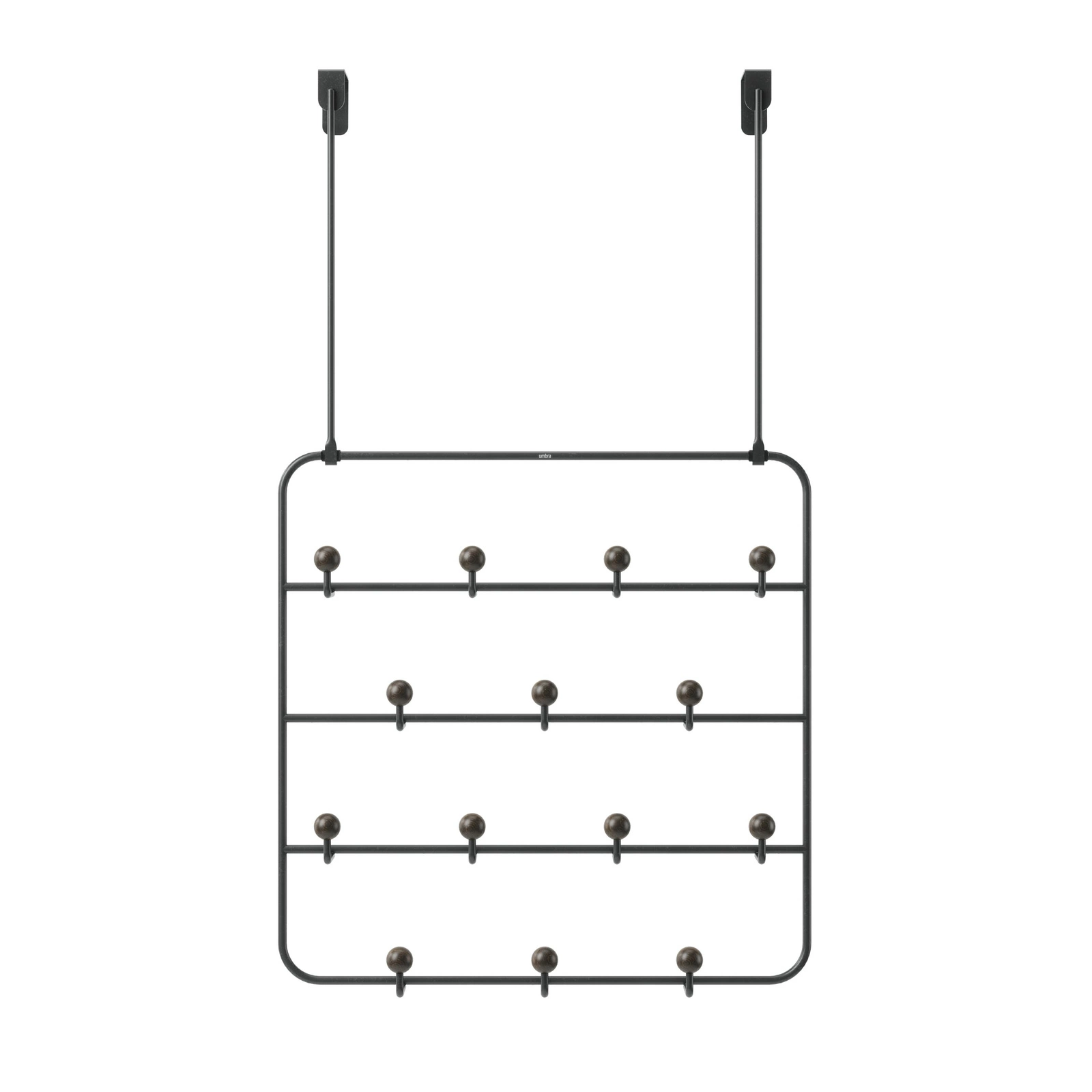 Wieszak ścienny uporządkuje dom w tym ubrania, klucze, torby leżące na podłodze, sofie lub w innych miejscach. Można go zawiesić zarówno na drzwiach jak i na ścianie, zastępując w ten sposób klasyczny stojący wieszak na ubrania czy torebki. Posiada 14 uchwytów, których końcówki wykończone zostały ciekawymi kulkami wykonanymi z drewna. Maksymalna grubość drzwi na których można powiesić organizer to 4cm. Użyj tych ozdobnych haczyków ściennych na drzwiach w sypialni, łazience, przedpokoju czy kuchni.