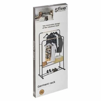 Wieszak Artemis marki 5five simply smart to nowoczesny wieszak stojący do przedpokoju, wykonany z solidnego czarnego metalu. Dzięki podwójnemu drążkowi oraz praktycznej dolnej półce, zyskujesz nie tylko miejsce na kurtki, płaszcze oraz odzież codzienną, ale także wygodne rozwiązanie do przechowywania butów lub toreb. Jego elegancki, loftowy design w połączeniu z wymiarami 150 cm wysokości, 82 cm szerokości i 50,2 cm głębokości sprawia, że doskonale wpasuje się w każde nowoczesne wnętrze przedpokoju lub garderoby.