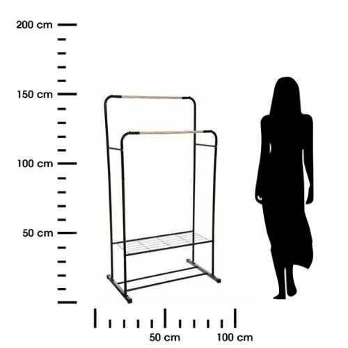 - Stojąca konstrukcja – nie wymaga montażu do ściany, możesz dowolnie przestawiać wieszak w zależności od potrzeb