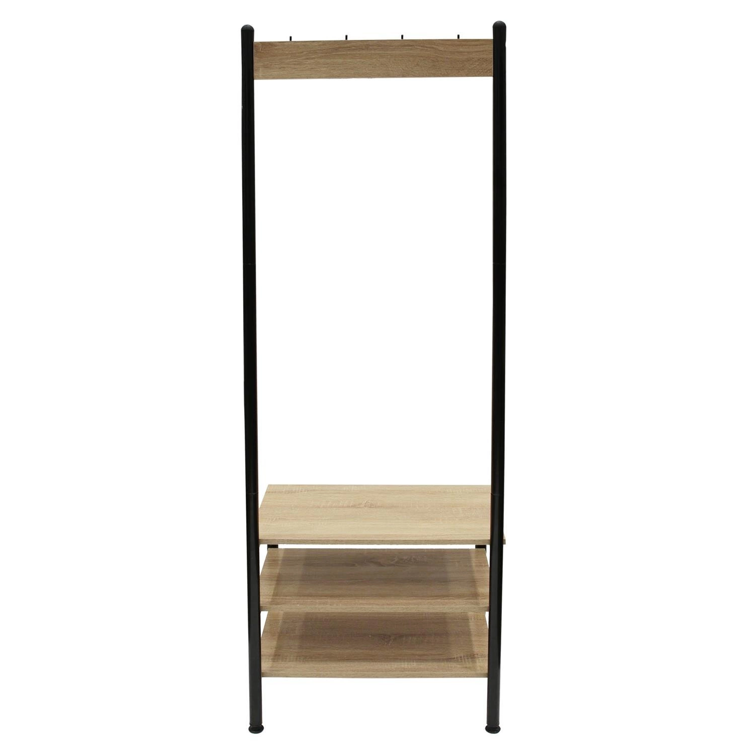 Intesi Country to stojący wieszak do przedpokoju, łączący funkcjonalność z wyrazistym loftowym stylem. Ta propozycja marki Intesi została zaprojektowana z myślą o maksymalnej wygodzie użytkowania – posiada 4 wytrzymałe haczyki na kurtki oraz 3 pojemne półki na dodatki i akcesoria. Dzięki połączeniu naturalnego wykończenia i czarnych elementów metalowych, ten wieszak doskonale wpisuje się w nowoczesne, industrialne wnętrza, stanowiąc praktyczną dekorację każdego przedpokoju lub poczekalni. Wysokość 175 cm pozwala wygodnie odwiesić nawet długie płaszcze, a szerokość 60 cm zapewnia dużą pojemność przy zachowaniu smukłej formy.