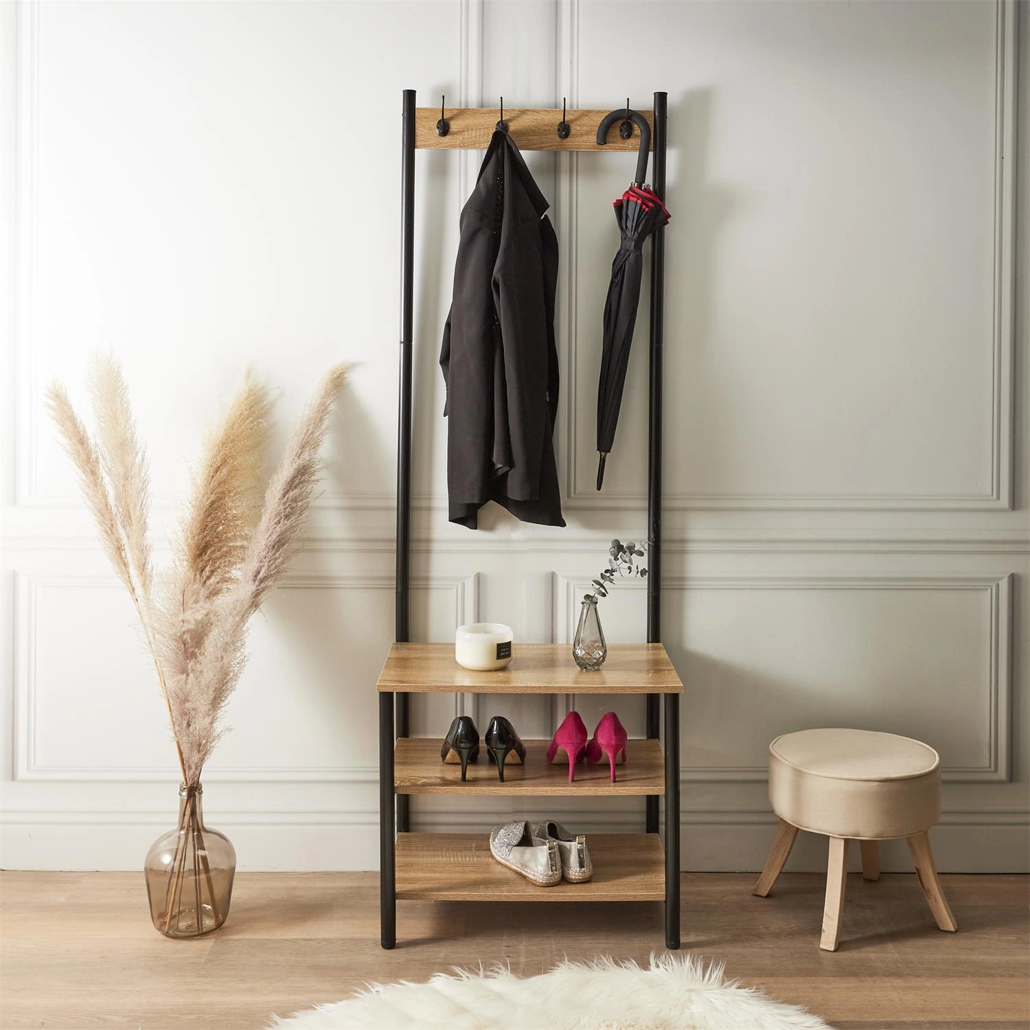 - 4 wytrzymałe haczyki – idealne na kurtki, płaszcze i plecaki