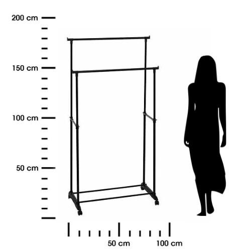 Wieszak stojący na ubrania na kółkach podwójny czarny 5five simply smart to doskonałe połączenie nowoczesnego stylu, funkcjonalności i solidnego wykonania. Zaprojektowany z myślą o maksymalnej wygodzie użytkowania, oferuje dwa poziomy przechowywania odzieży w formie drążków, a dzięki mobilnej podstawie na czterech kółkach pozwala swobodnie zmieniać miejsce ustawienia. Minimalistyczna, czarna konstrukcja podkreśli charakter wnętrz w stylu loftowym i nowoczesnym, a optymalne wymiary (wysokość 160 cm, szerokość 80 cm, głębokość 43 cm) zapewnią wygodne użytkowanie zarówno w garderobie, sypialni, jak i łazience.