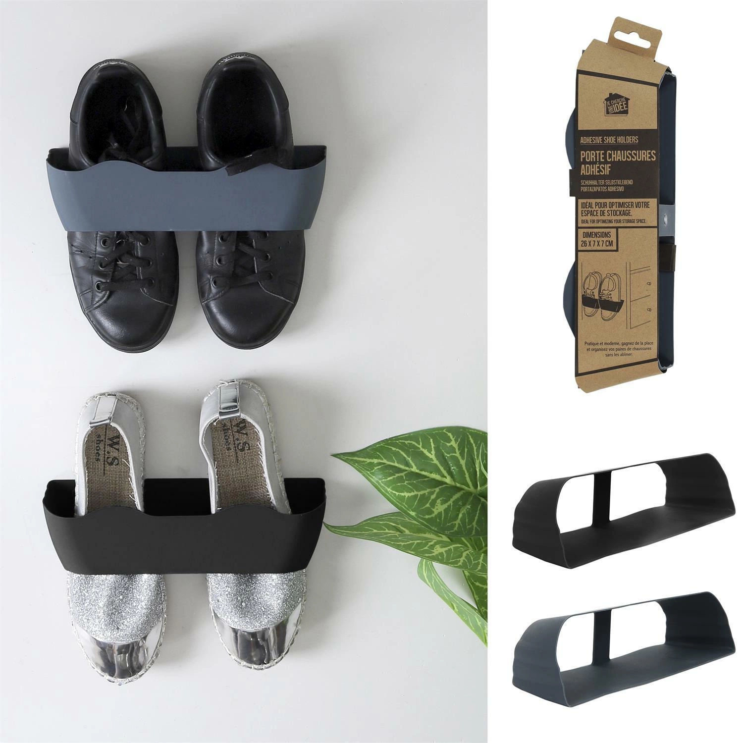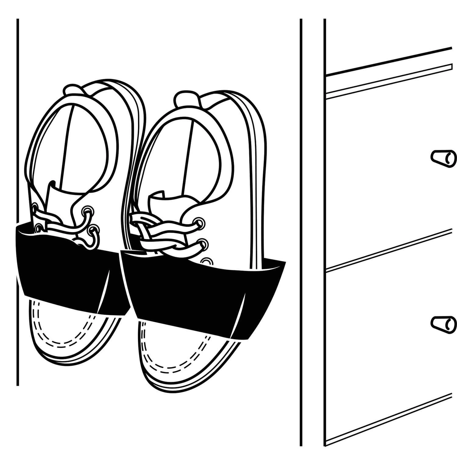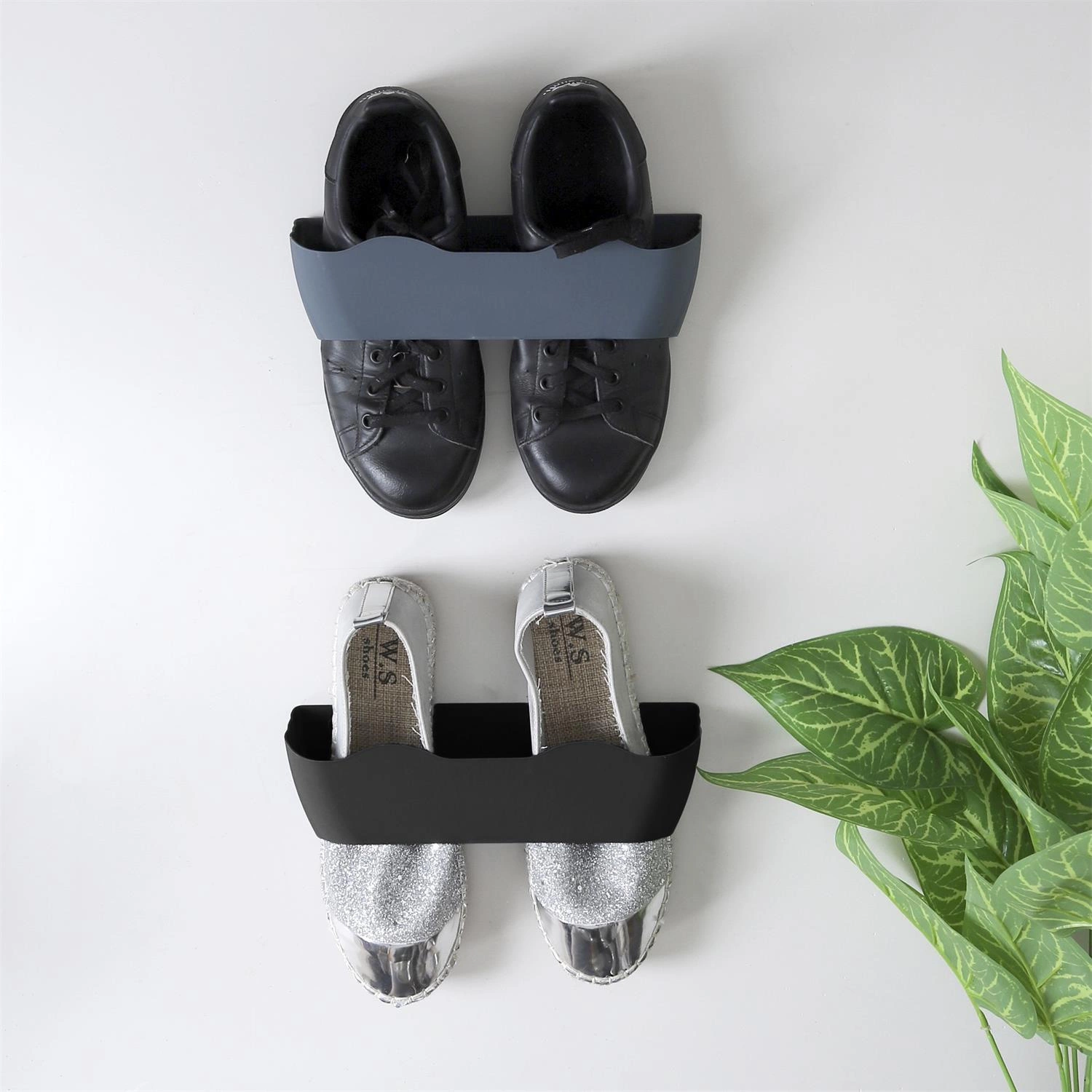 Uchwyt na buty wyprodukowany z tworzywa sztucznego, rozwiąże problem braku miejsca w przedpokoju lub wąskim korytarzu. Jego uniwersalna forma pomoże Ci zyskać wolną przestrzeń i zadbać o organizację obuwia. Zamontowanie uchwytu na ściance szafki lub wewnątrz dużej szafy pozwala stworzyć nowe miejsce do przechowywania butów. Wykonany jest z wysokiej jakości tworzywa sztucznego w dwóch dostępnych kolorach — czarnym i szarym. Jeden uchwyt na buty zmieści jedną parę obuwia. Zapewnij sobie wygodne przechowywanie za niską cenę.