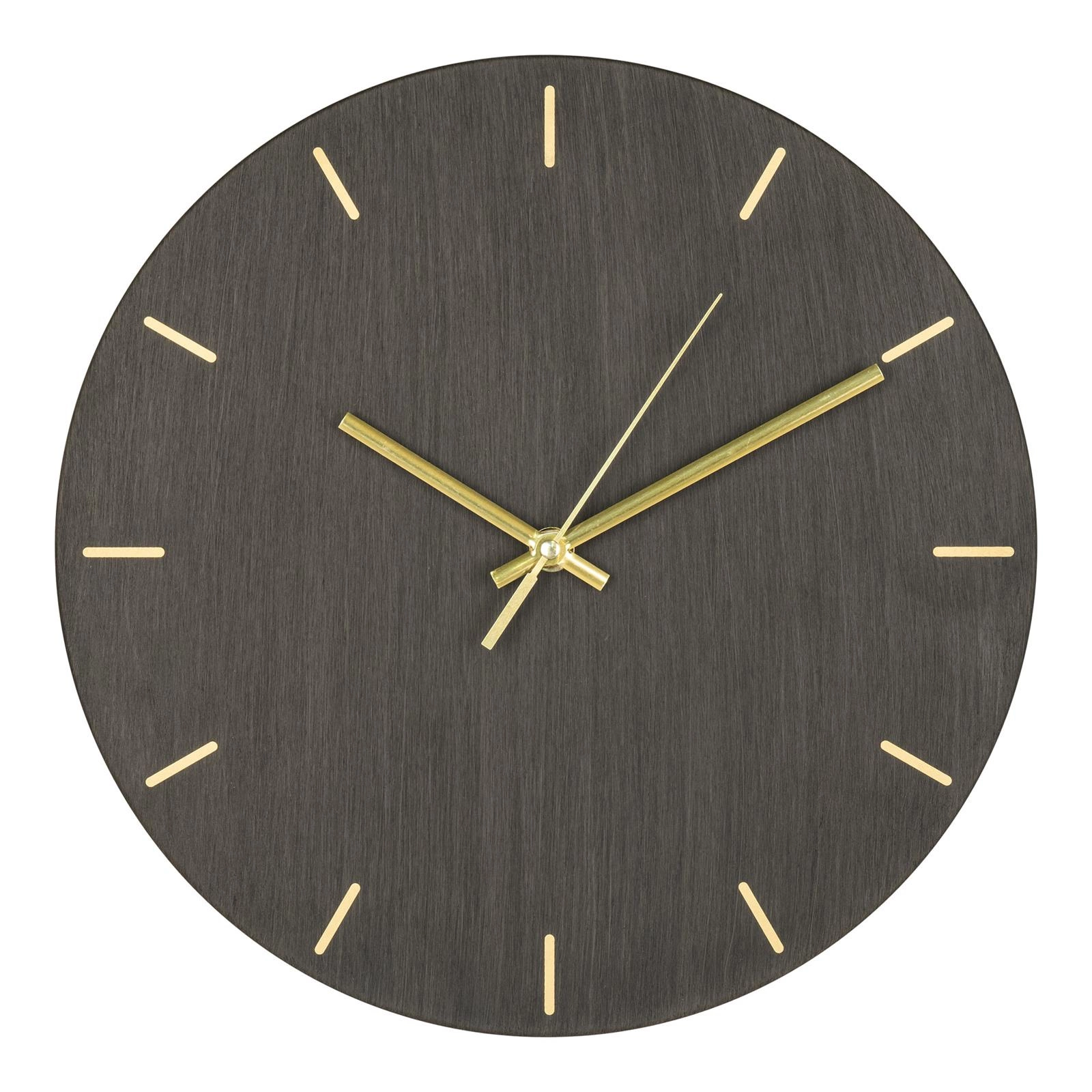 Okrągły, metalowy zegar Asti o kolorze oraz strukturze przypominającej naturalne drewno sprawdzi się w salonie w stylu boho albo jadalni w stylu skandynawskim. Zegar na ścianę Asti o średnicy 30 cm wykonany został z metalu. Tarcza zegara ozdobiona została kreskami oznaczającymi godzinę. Minimalistyczny zegar posiada standardowo trzy wskazówki w kolorze złotym. W zależności od ich funkcji są one grubsze lub cieńsze oraz zmienia się ich długość. Zegar zasilany jest na baterie AA, które nie zostały załączone do zegara.