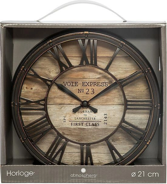 Zegar ścienny vintage Atmosphera Vintage wood 21 cm to wyjątkowa dekoracja, która wprowadza do wnętrza klimat minionych lat. Dzięki starannie odwzorowanej imitacji drewna oraz minimalistycznym czarnym detalom, zegar doskonale sprawdzi się w salonie, sypialni, jadalni lub biurze urządzonym w stylu loftowym. Model ten łączy w sobie ponadczasowy design z praktyczną funkcjonalnością – średnica 21 cm pozwala na wygodny odczyt godziny nawet z większej odległości, a solidne wykonanie gwarantuje trwałość na lata.