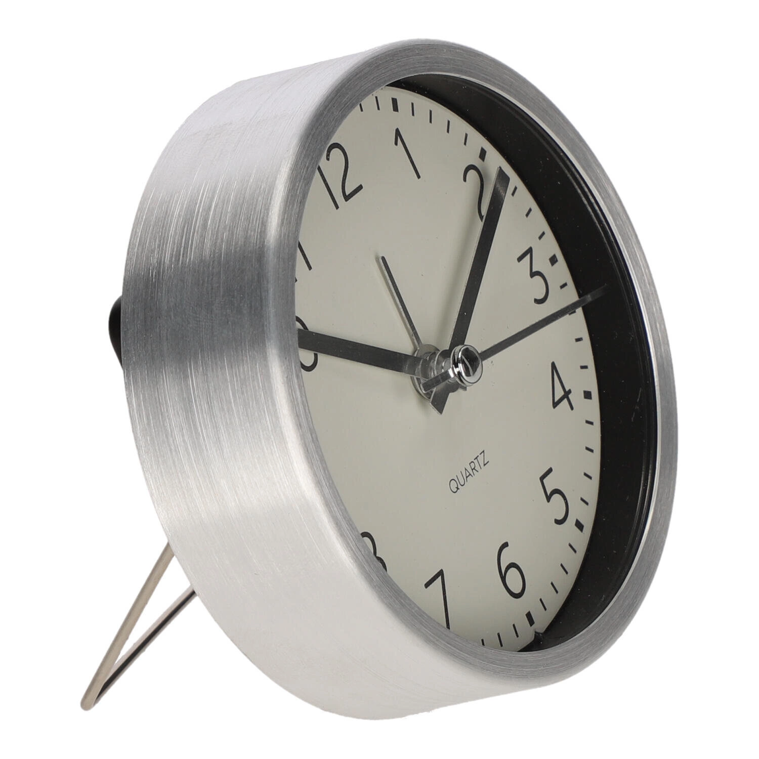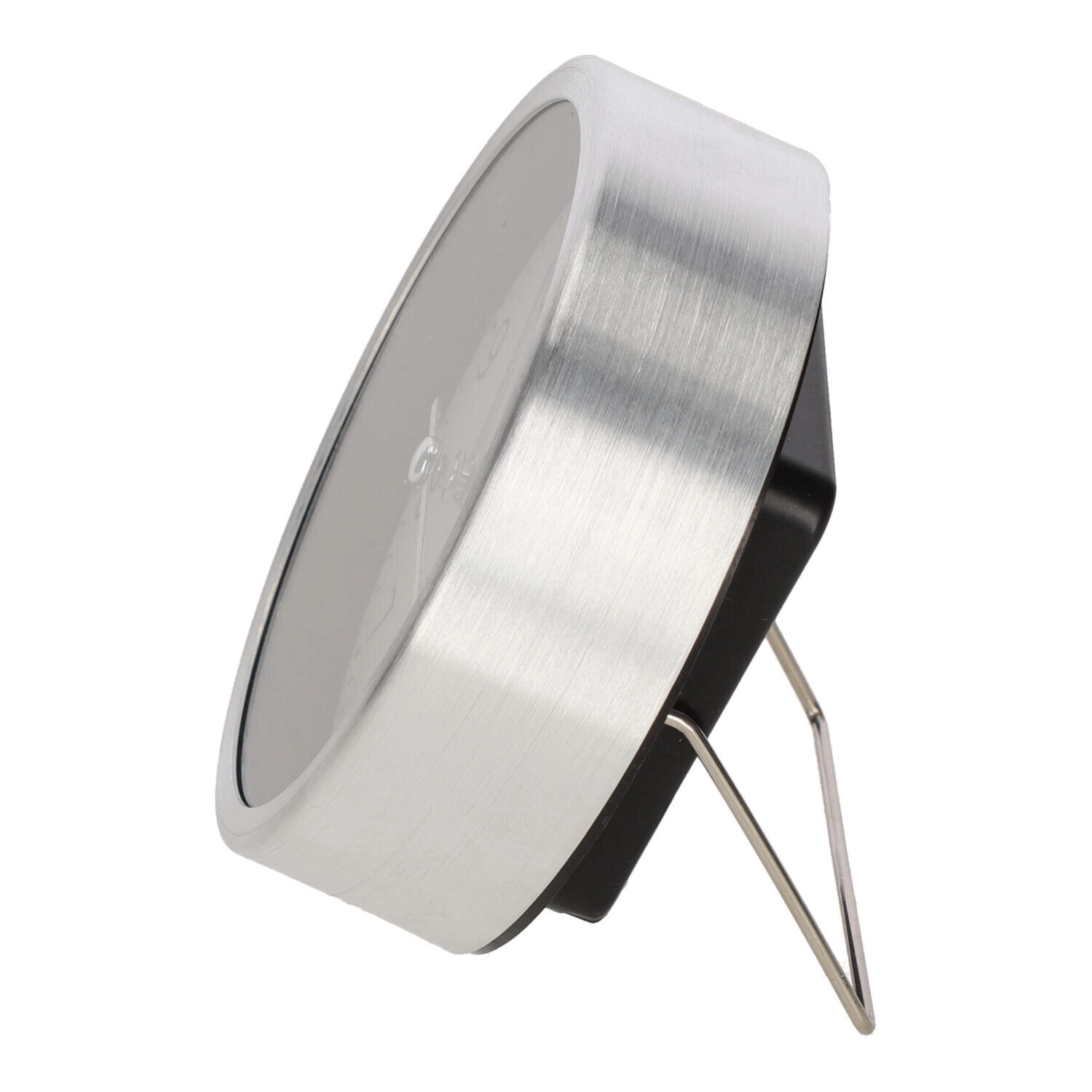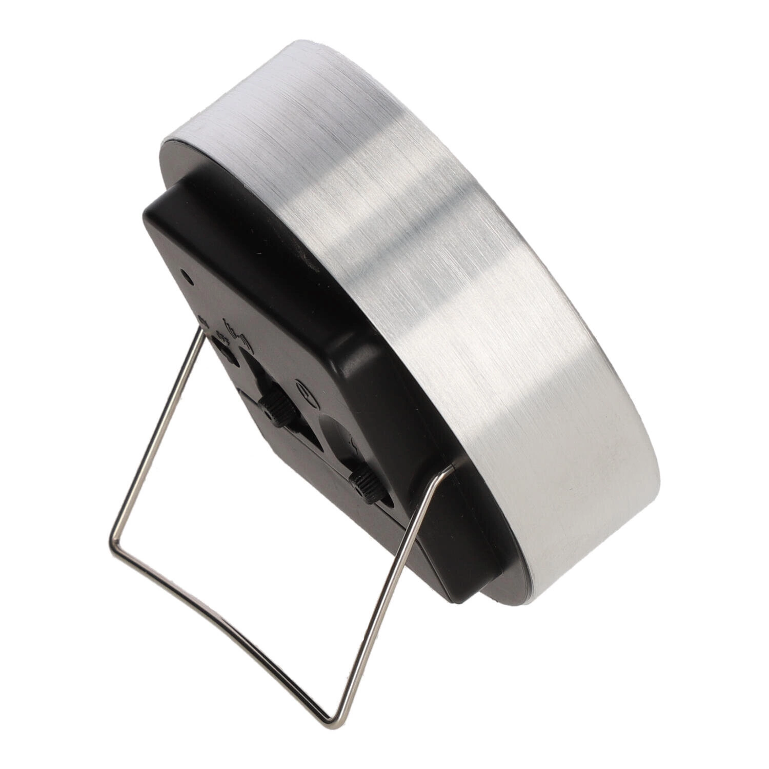 Budzik Quazi srebrny marki Intesi to nowoczesny zegar stojący, który doskonale sprawdzi się w sypialni lub biurze. Jego minimalistyczny design, kompaktowa średnica 9 cm i elegancka, okrągła forma czynią go nie tylko praktycznym, ale i dekoracyjnym dodatkiem do każdego wnętrza. Wysokiej jakości metalowa obudowa w kolorze srebrnym podkreśla nowoczesny styl, a wyraźna, biała tarcza zapewnia łatwy odczyt godziny nawet z większej odległości.