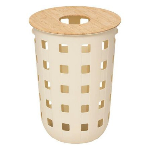 Bambusowy kosz na pranie Harmony 60L marki 5five simply smart to okrągły, pojemny i stylowy dodatek do łazienki, który łączy naturalny bambus z trwałym tworzywem sztucznym. Beżowy kolor oraz estetyczna pokrywa podkreślają modny styl boho, a odporność na wilgoć i łatwość czyszczenia zapewniają codzienny komfort użytkowania. Z wysokością 59,8 cm i średnicą 43,4 cm, ten kosz na bieliznę pomieści nawet większą ilość ubrań, dbając o porządek i estetykę Twojego wnętrza.