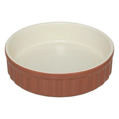 Ceramiczne naczynie do creme brulée 12 cm marki 5five simply smart to okrągła, czerwono wykończona miseczka przeznaczona do zapiekania wykwintnych deserów oraz małych przekąsek. Wykonane z gładkiej ceramiki, naczynie łączy w sobie odporność na wysoką temperaturę z łatwością czyszczenia. Może być używane zarówno w piekarniku, jak i w mikrofalówce, a jego kompaktowy rozmiar (średnica 12,5 cm, wysokość 3,4 cm) sprawia, że idealnie nadaje się do serwowania pojedynczych porcji klasycznego creme brulée lub innych zapiekanych słodkości.