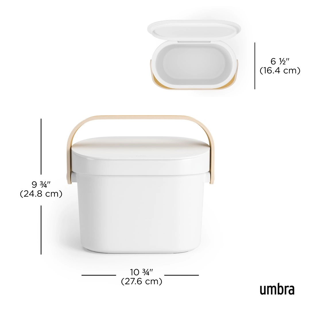 Ułatw sobie kompostowanie dzięki kompostownikowi Bellwood. Zaprojektowany z myślą o tym, aby prezentować się doskonale na blacie lub w ukryciu, ten kompostownik posiada zdejmowaną drewnianą rączkę, która ułatwia opróżnianie i czyszczenie. Pojemność 4 litrów to idealny rozmiar na codzienne resztki jedzenia, a sprytny otwór na worek pozwala na schludne przechowywanie worków kompostowych. W zestawie znajduje się klej do montażu bez użycia narzędzi w szafce, na ścianie, a nawet na ścianie nad blatem – w zależności od tego, co najbardziej pasuje do Twojej kuchni. Zdejmowana obręcz, pokrywa i rączka pozwalają dostosować położenie kompostownika, a gdy nadejdzie czas czyszczenia, wystarczy włożyć go do zmywarki (rączka zdjęta), aby cieszyć się świeżym startem. Wykonany z materiałów niezawierających BPA i pasuje do standardowych worków kompostowych o pojemności 6 litrów.