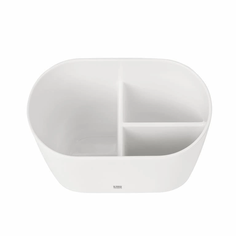 - Przemyślany kształt – wygodnie mieści kilka szczoteczek i pastę do zębów, idealnie sprawdza się także jako pojemnik na szczoteczkę elektryczną