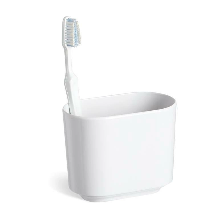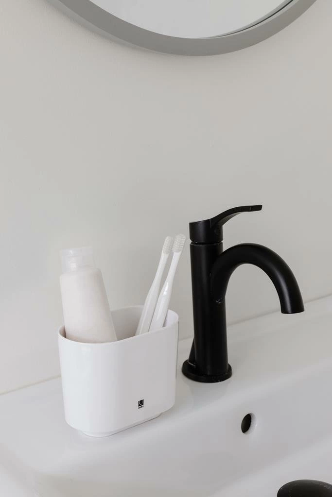 Projekt Umbra Step skupia się na prostocie i praktyczności, dzięki czemu pojemnik doskonale wpisuje się w nowoczesne aranżacje. Jego kompaktowa forma została zaprojektowana tak, by wygodnie przechowywać szczoteczki do zębów, pastę oraz drobne akcesoria higieniczne. Gładka powierzchnia ułatwia czyszczenie, a szeroki otwór umożliwia swobodny dostęp do zawartości – nawet dzieci bez problemu sięgną po swoją szczoteczkę każdego ranka.