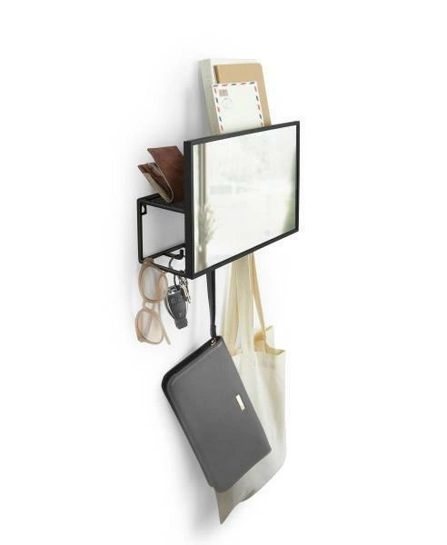 Organizer Cubiko Umbra został stworzony z myślą o tych, którzy cenią porządek, ale nie chcą rezygnować z designerskiego wyglądu swojego przedpokoju. Czarny, matowy kolor oraz prosta, geometryczna forma to synonimy nowoczesnej elegancji. Lustro pozwala na szybkie poprawienie wyglądu przed wyjściem, a pięć solidnych haczyków zapewnia wygodne miejsce na kurtki, klucze, torebki czy smycze. Ukryta półka z tyłu lustra to dodatkowa przestrzeń na drobiazgi, które chcesz mieć zawsze pod ręką, nie eksponując ich na widoku.