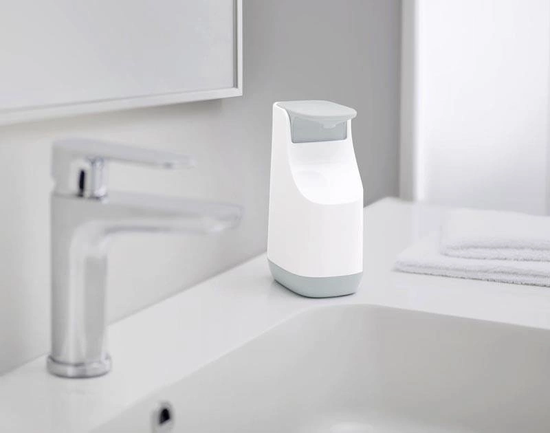 Dozownik mydła marki Joseph Joseph został zaprojektowany z myślą o łazienkach urządzonych w minimalistycznym, nowoczesnym stylu. Jego neutralna kolorystyka sprawia, że z łatwością dopasujesz go do aranżacji zarówno w jasnych, jak i ciemniejszych wnętrzach. Wygodna pojemność 350 ml pozwala uniknąć częstego uzupełniania, co jest szczególnie praktyczne przy codziennym użytkowaniu przez całą rodzinę.