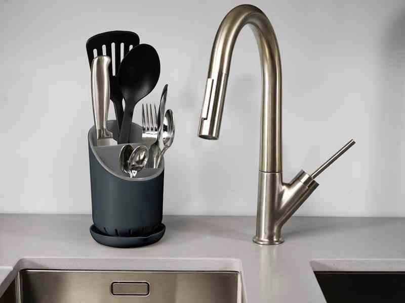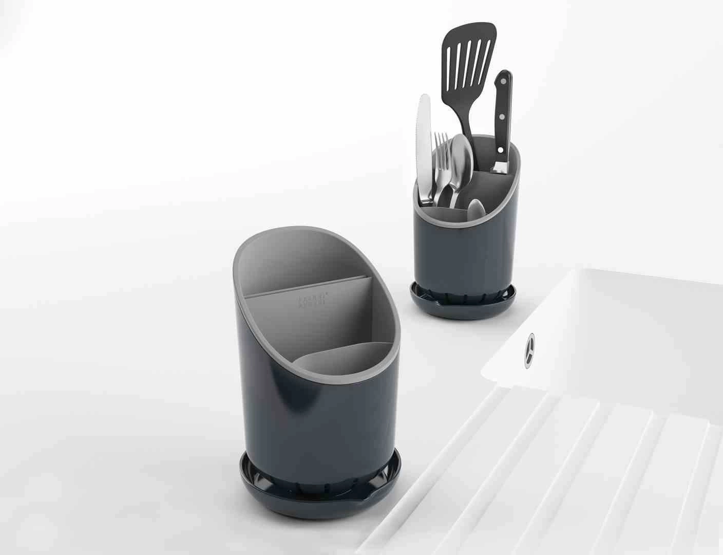 - wielowarstwowa konstrukcja do rozdzielenia różnych sztućców,- oddzielna przegródka na noże – małe ryzyko skaleczenia,- woda ścieka do podstawki, którą można łatwo opróżnić,- rozkładany – łatwe mycie,- nadaje się do mycia w zmywarce.