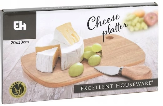 Deska z drewna bambusowego nie tylko prezentuje się bardzo elegancko, ale także jest wytrzymała i przyjazna dla noża – nie tępi jego ostrza. Bambus to materiał, który nie chłonie zapachów i jest odporny na wilgoć, dzięki czemu Twoje sery zawsze będą świeże i zachowają pełnię smaku. Prostokątny kształt i kompaktowy rozmiar 20×13 cm sprawiają, że deska nie zajmuje dużo miejsca, a jednocześnie jest wystarczająco duża do efektownego serwowania nawet kilku rodzajów sera.