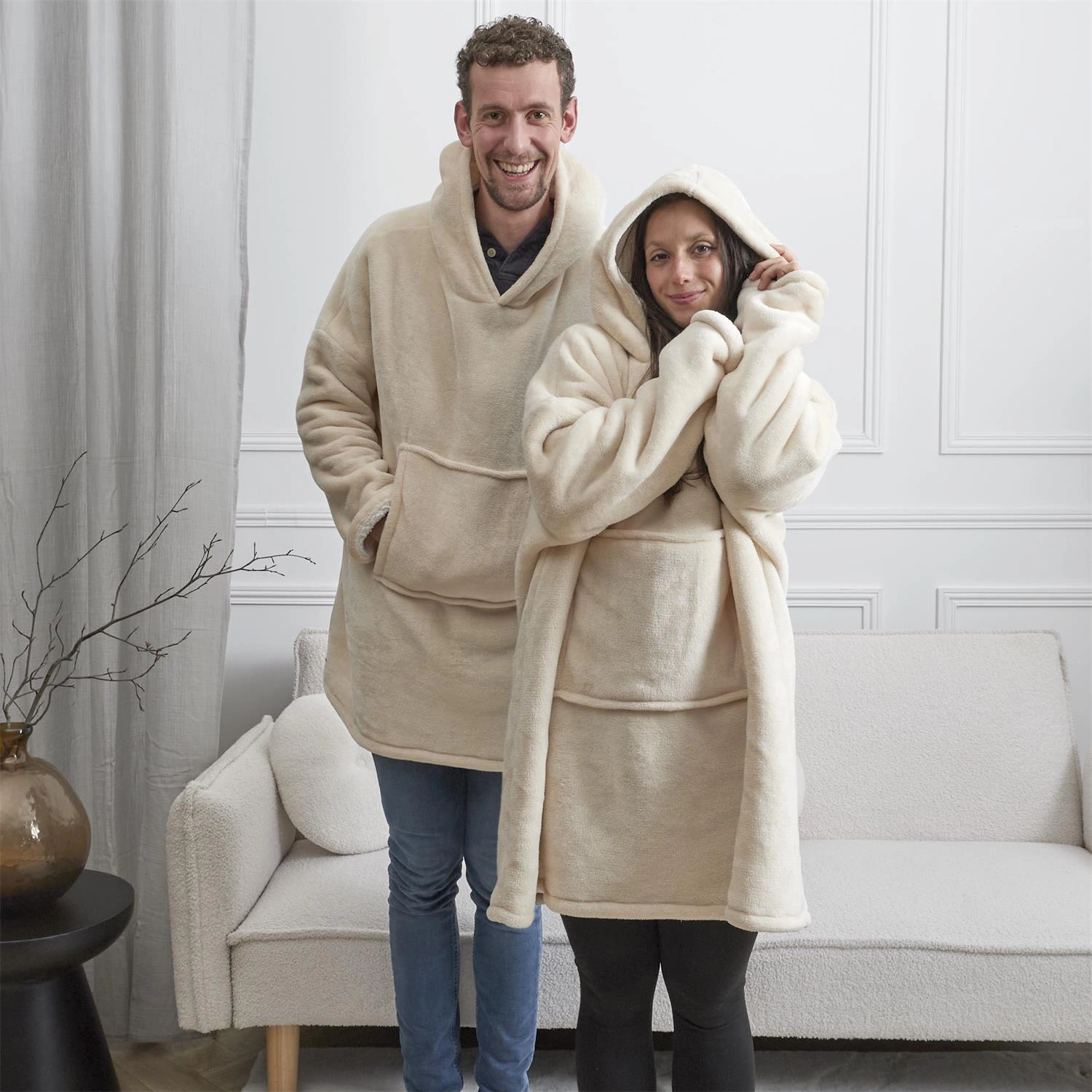 Bluzo koc Intesi to nie tylko ciepły koc do salonu, ale również funkcjonalny dodatek na co dzień. Kaptur chroni głowę i szyję przed przeciągami, a obszerna forma umożliwia wygodne otulenie całego ciała. Możliwość prania w pralce pozwala w prosty sposób utrzymać koc w czystości, co jest szczególnie ważne w codziennym użytkowaniu. Beżowa kolorystyka wprowadza do wnętrza przytulność i harmonię, wpisując się w nowoczesny oraz boho styl aranżacji.