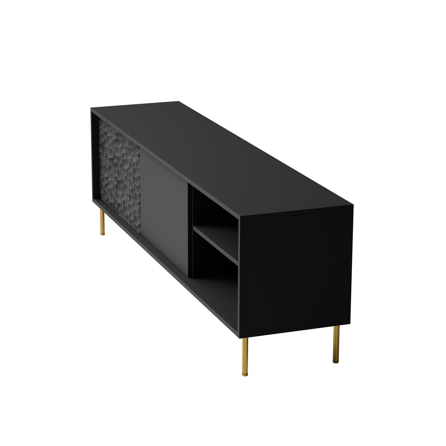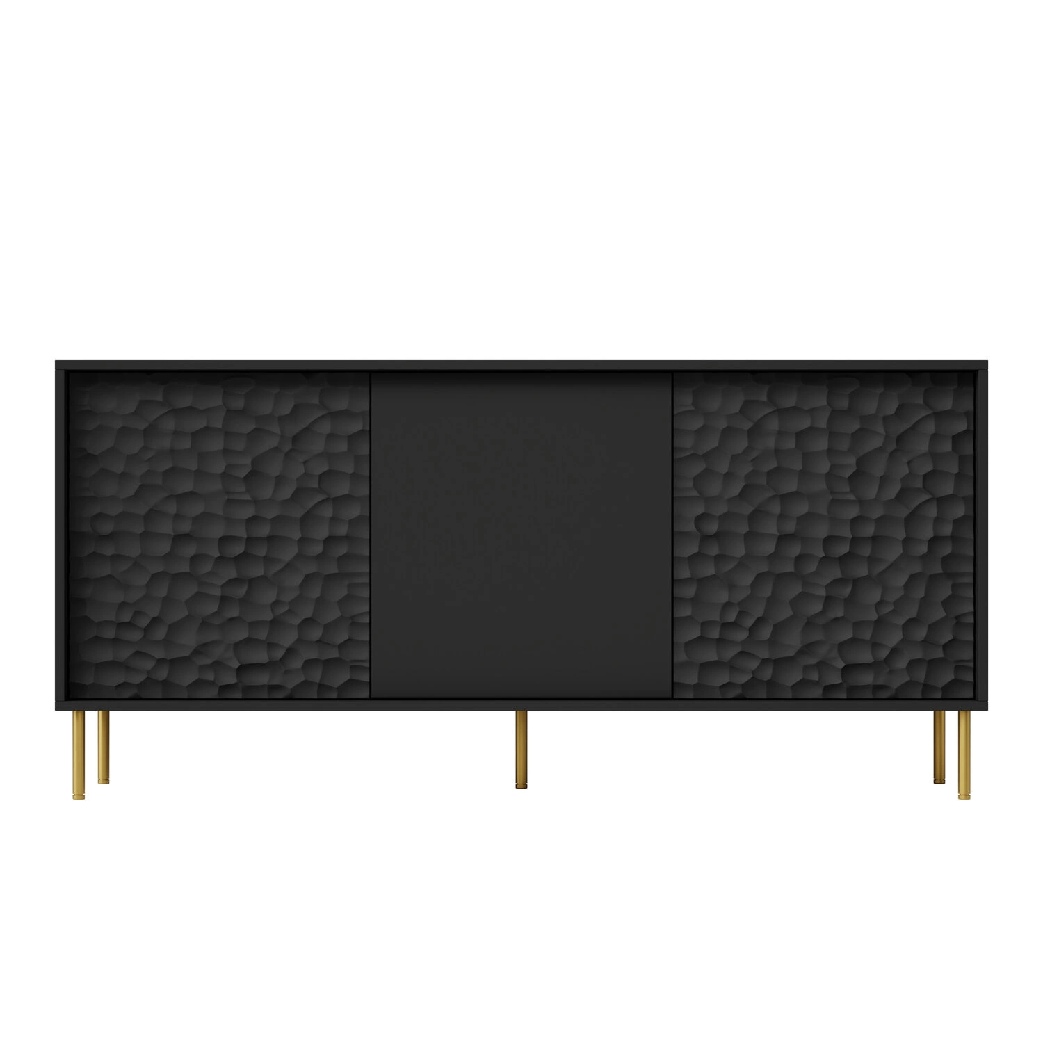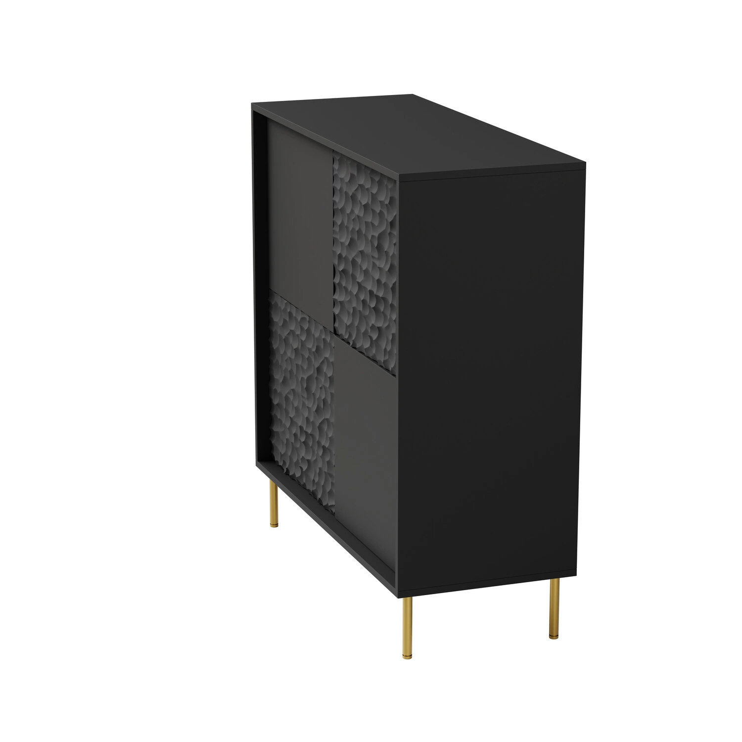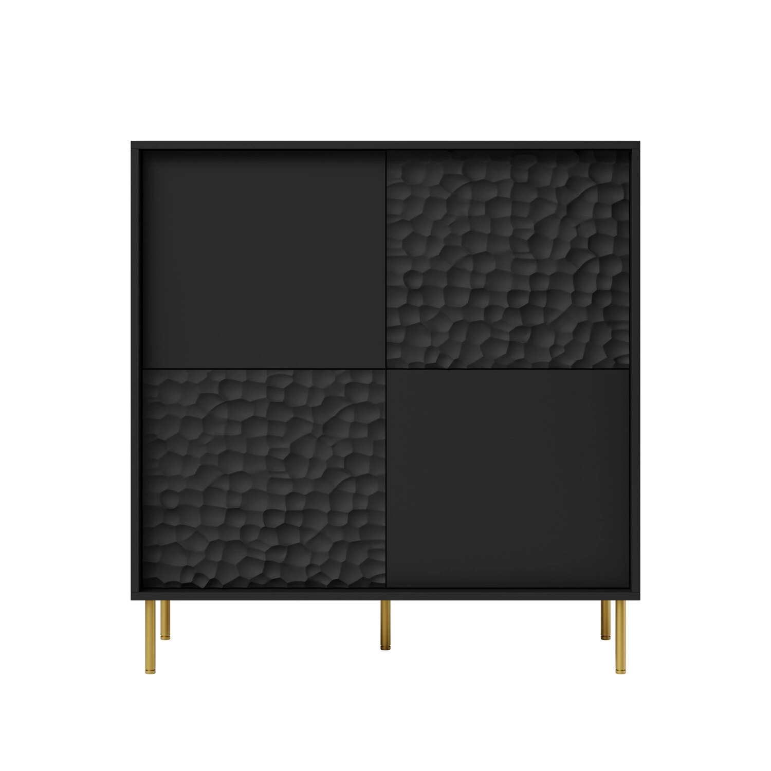 Zestaw mebli do salonu Afir doskonale łączy estetykę z funkcjonalnością, co podkreśla filozofię glamour. Czarne meble, uzupełnione złotymi akcentami i misternym dekorem 3D, stanowią wyjątkowe uzupełnienie dla każdego wnętrza, dodając nuty luksusu i wyrafinowania. Każdy element kolekcji został starannie zaprojektowany, by zapewnić mnóstwo przestrzeni do przechowywania i ekspozycji Twoich ulubionych dekoracji. Zestaw mebli do salonu Afir zachęca do twórczego kreowania przestrzeni, pozwalając na stworzenie unikalnych układów, które harmonijnie wpisują się w Twoje wnętrze. Zestaw mebli Afir to nie tylko meble, to narzędzia do tworzenia wyjątkowej atmosfery życia, w której piękno i funkcjonalność idą ręka w rękę.