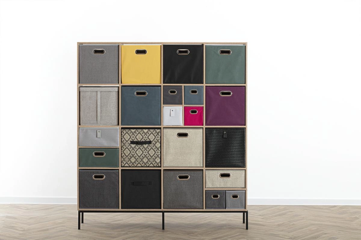 - Umieść na nogach regały o różnych rozmiarach, aby uzyskać ciekawy, asymetryczny mebel
