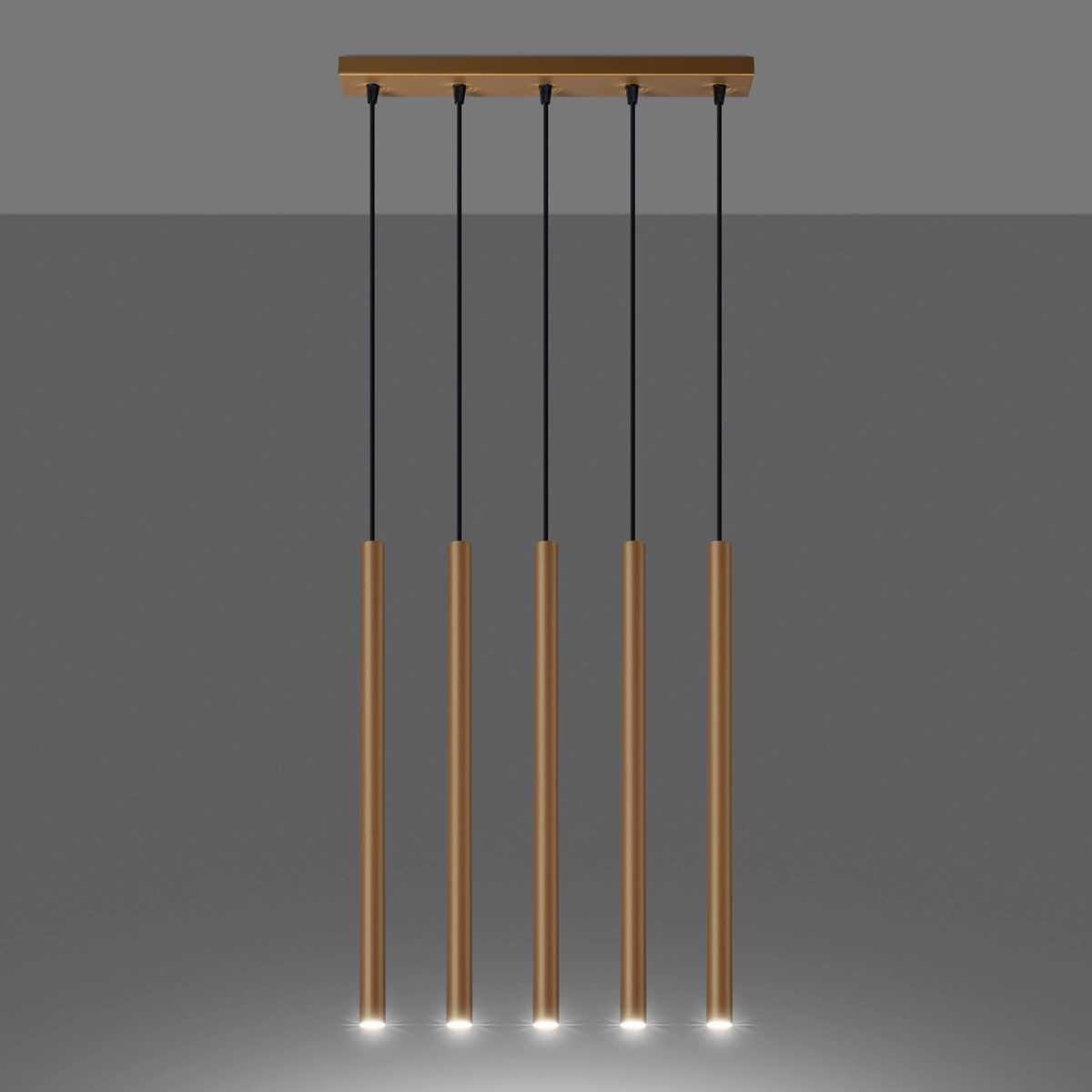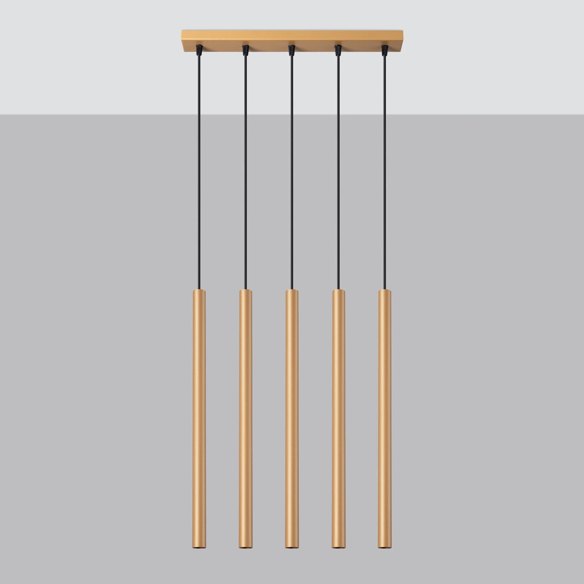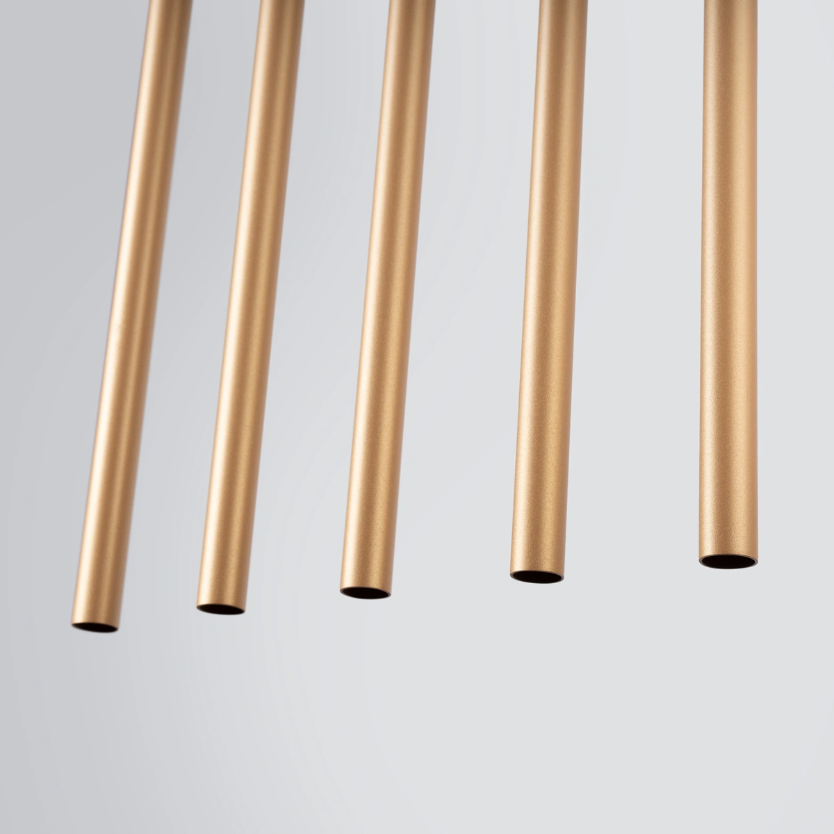 Lampa sufitowa Pastelo 5-punktowa marki SOLLUX to propozycja dla miłośników nowoczesnego designu, którzy cenią sobie zarówno funkcjonalność, jak i styl. Wykonana w całości z metalu, w eleganckim złotym kolorze, o wysokości 103 cm – doskonale sprawdzi się jako główne źródło światła w salonie, jadalni, kuchni czy sypialni. Pięć skierowanych w dół punktów świetlnych gwarantuje równomierne oświetlenie i tworzy przyjazną atmosferę w Twoim domu.