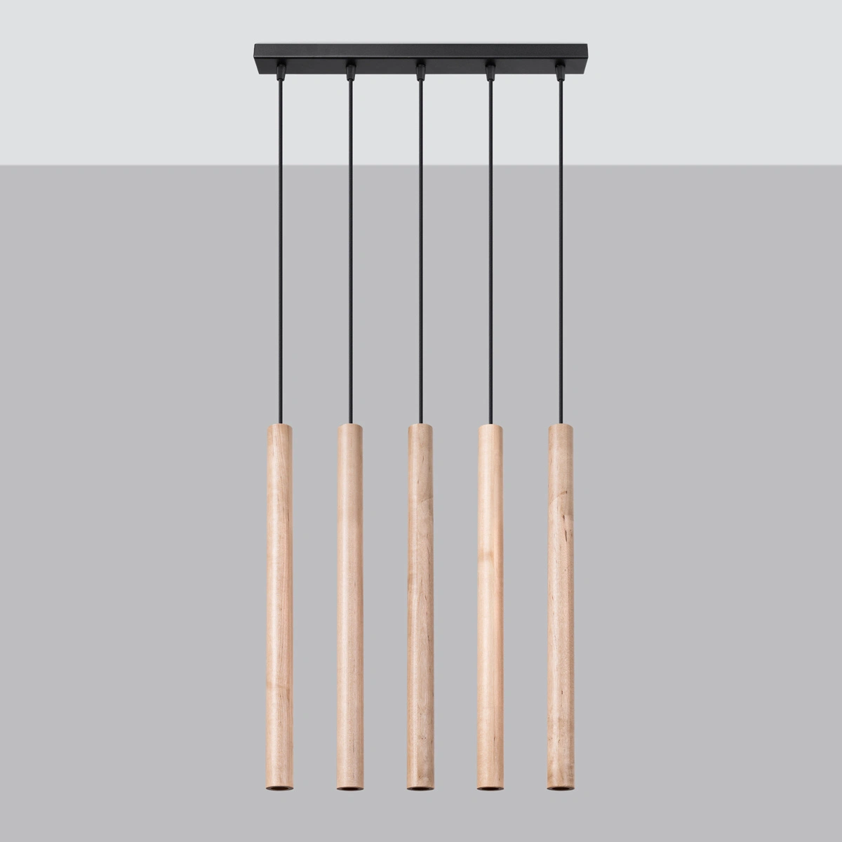 Lampa wisząca Pastelo 5L marki SOLLUX LIGHTING to nowoczesna propozycja oświetlenia do salonu i jadalni, która łączy naturalny, drewniany akcent z minimalistyczną formą. Model o wysokości 103 cm i szerokości 5 cm wyposażony jest w pięć punktów świetlnych, co sprawia, że doskonale sprawdzi się jako lampa nad stół lub centralny żyrandol do salonu. Połączenie metalu z naturalnym kolorem drewna nadaje lampie subtelny styl, który wprowadza do wnętrza ciepło i harmonię.