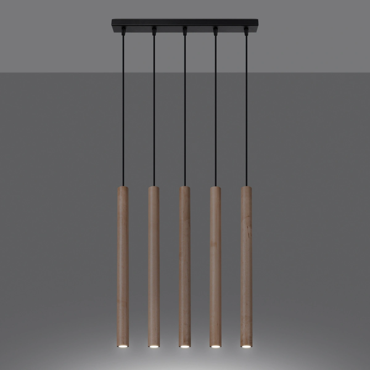 Lampa wisząca Pastelo 5L została zaprojektowana z myślą o nowoczesnych przestrzeniach, gdzie liczy się zarówno funkcjonalność, jak i estetyka. Smukła linia lampy, pięć równomiernie rozmieszczonych źródeł światła i kierunek świecenia w dół zapewniają optymalne oświetlenie stołu w jadalni, wyspy kuchennej lub przestrzeni wypoczynkowej w salonie. Naturalny kolor drewna doskonale komponuje się z jasnymi, skandynawskimi aranżacjami oraz wnętrzami inspirowanymi stylem eko.
