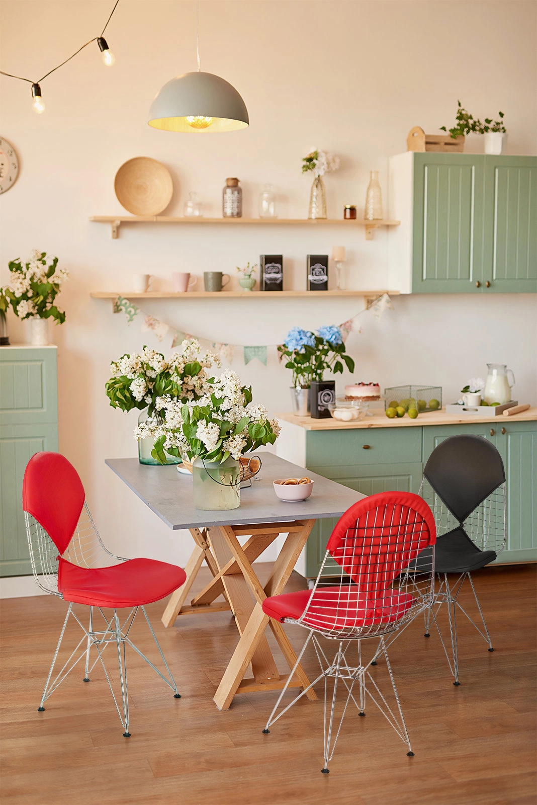 Główną i najbardziej rzucającą się w oczy cechą tego krzesła jest wykonanie go z chromowanego drutu, który dzięki uformowaniu w ergonomiczny kształt oraz dużej gęstości przeplotu zapewnia wysoki komfort osobie siedzącej. O ogromie pracy jaką trzeba włożyć w produkcje krzesła niech świadczy fakt, że samo siedzisko ma ponad 320 punktowych spawów. Dla zwiększenia komfortu użytkownika, krzesło jest wykończone poduszkami na siedzisku i oparciu. Poduszki te można jednak łatwo zdjąć.