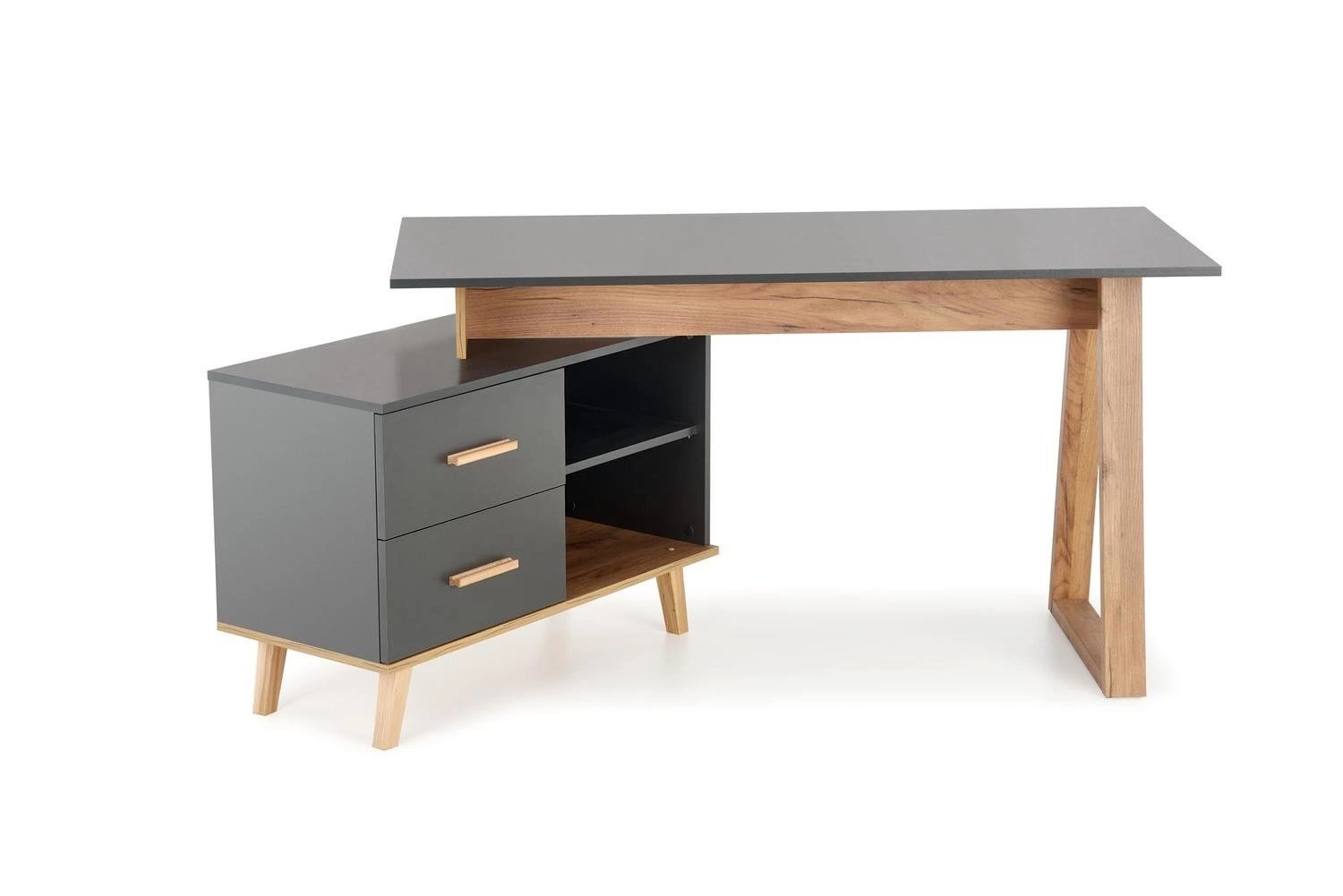 Biurko Exena II dąb wotan i antracyt to niezwykle funkcjonalne i praktyczne rozwiązanie, które doskonale sprawdzi się w każdym biurze czy domowym gabinecie. Jego szerokość, która wynosi od 134 do 210 cm, daje możliwość dostosowania go do indywidualnych potrzeb i preferencji użytkownika. Jedną z największych zalet tego biurka jest możliwość modyfikacji bocznej części. Może ona być równo z biurkiem, tworząc w ten sposób tradycyjne, prostokątne biurko. Jednak jeśli potrzebujesz większej przestrzeni do pracy, możesz ustawić ją prostopadle, tworząc w ten sposób praktyczne biurko narożne. Ta elastyczność sprawia, że biurko Exena II jest idealne zarówno do większych pomieszczeń biurowych, jak i do mniejszych przestrzeni domowych.