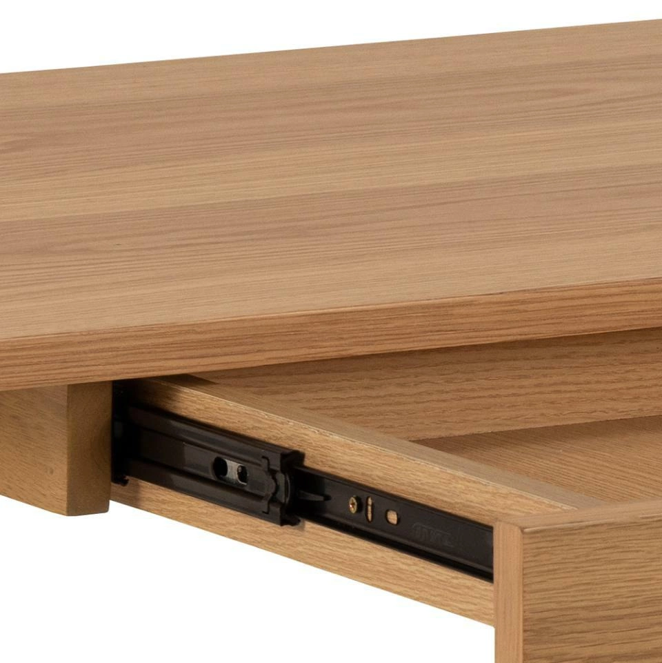 Biurko Barnett to nowoczesne i eleganckie rozwiązanie, które odmieni Twoje miejsce pracy lub kreatywnego kącika w domu. Jego prostokątny blat wykonany z płyty MDF i forniru dębowego prezentuje się niezwykle stylowo i solidnie. Dodatkowo, biurko posiada praktyczną małą szufladę umieszczoną po prawej stronie, co pozwala zachować porządek na biurku.
