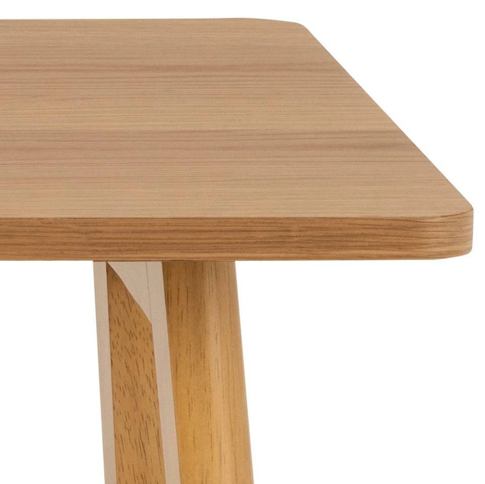 - Blat wykonany z płyty MDF i forniru dębowego prezentuje się stylowo i solidnie, dodając charakteru pomieszczeniu.