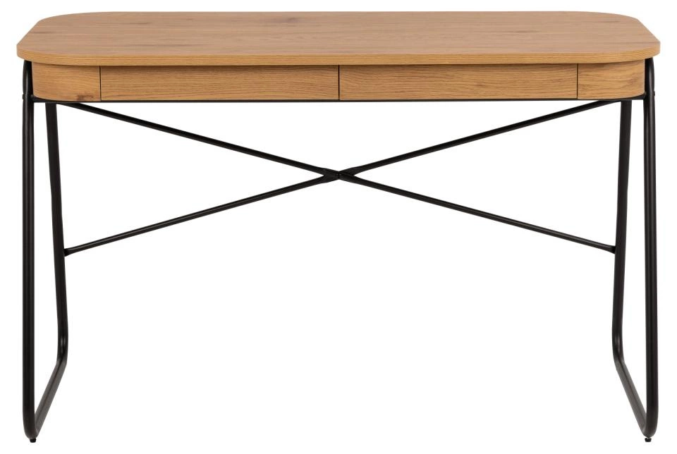 Biurko Blueton zostało zaprojektowane z myślą o praktyczności. Posiada dwie szuflady, które zapewniają bezpieczne przechowywanie zeszytów, długopisów i innych drobiazgów, co pomaga utrzymać porządek na biurku. Materiał blatu wykonany z płyty MDF z okleiną imitującą dąb zapewnia trwałość i estetykę, podczas gdy metalowa podstawa malowana proszkowo gwarantuje stabilność i solidność konstrukcji. Projekt biurka Blueton doskonale wpisuje się w różnorodne style wnętrz, w tym skandynawski, loftowy oraz nowoczesny.